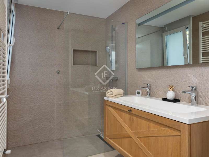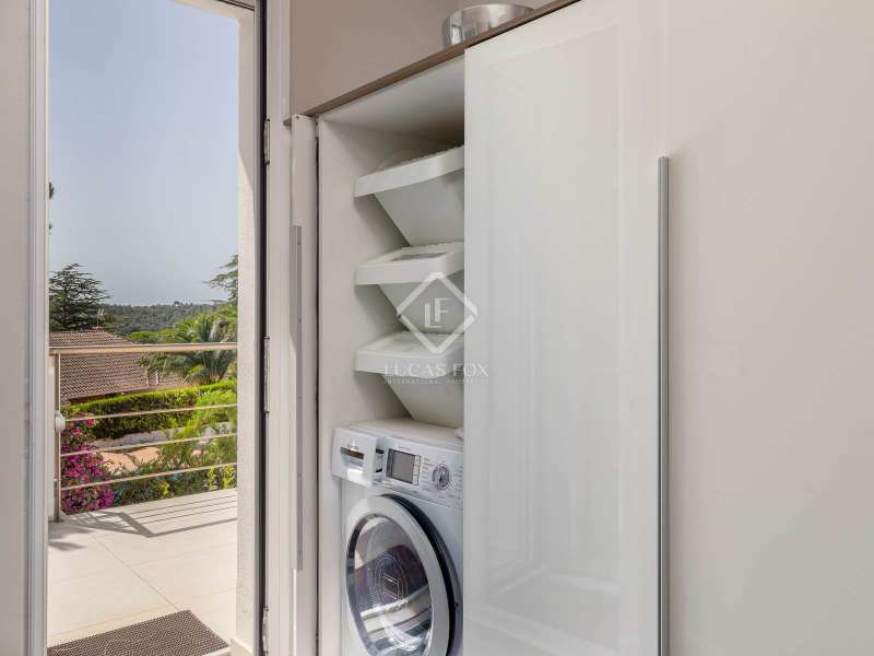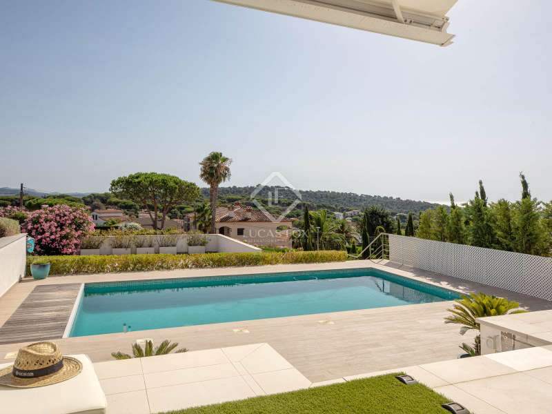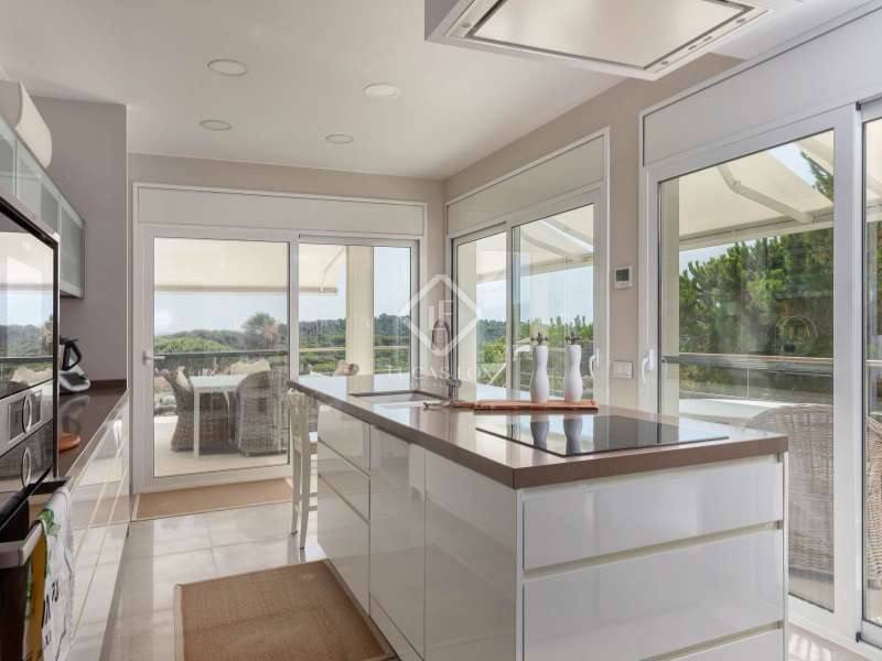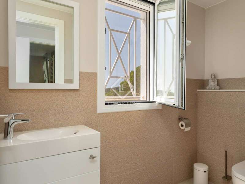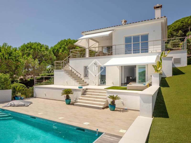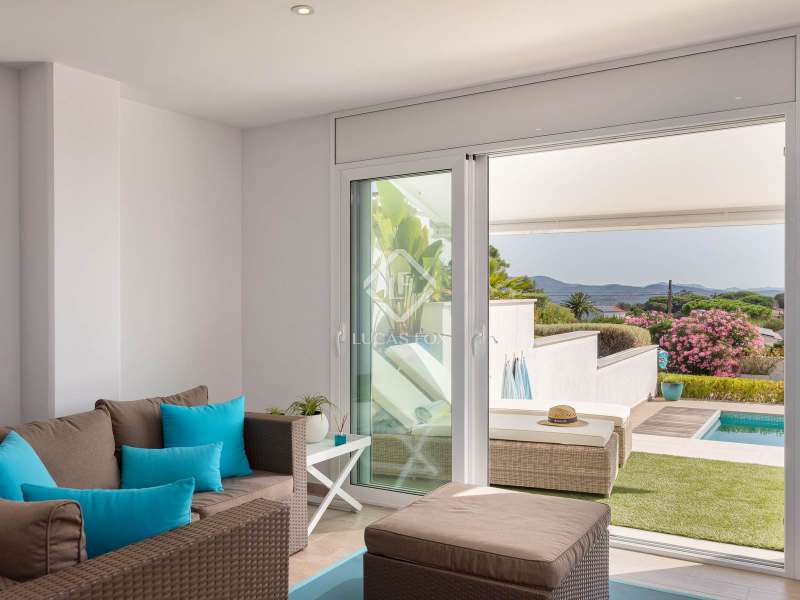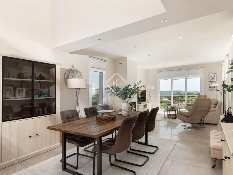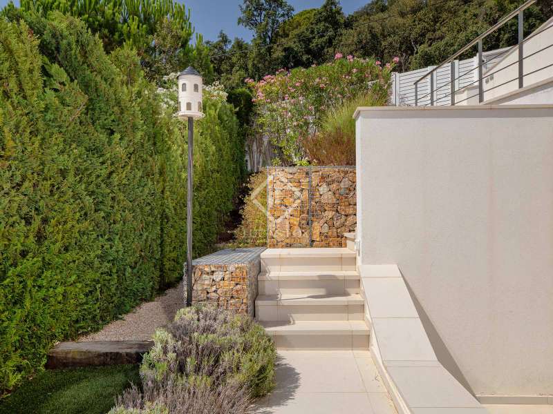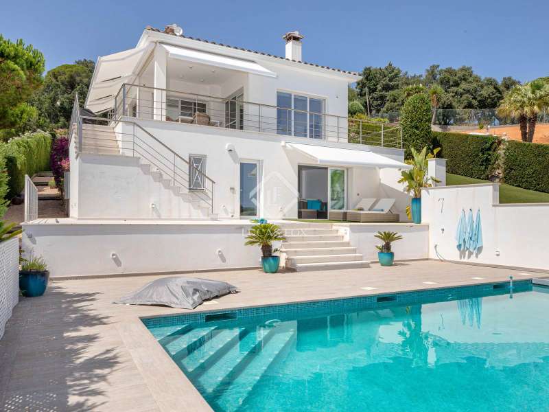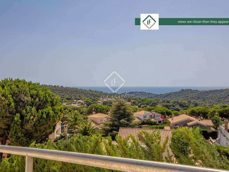 Villa Playa, a beautiful and elegant villa built in 2018 on a 1310 m² plot with sea views, private pool, garden with fruit trees, garage and mini golf just 5 minutes car from the most beautiful coves and beaches of the Costa Brava. This spacious villa is located in a quiet residential area between Platja d'Aro and Calonge, just a few minutes from the vibrant coastal town of Platja d'Aro and the most beautiful beaches of the Costa Brava. It was built with high quality materials, has two entrances from two streets and is spread over several floors. On the main floor , we have a nice living-dining room with a fireplace and sliding windows that lead to a terrace with sea views. The kitchen is fully equipped, with a central island and access to two terraces with a summer dining room , a utility room and storage space. On the same floor, there are two double bedrooms with built-in wardrobes and access to a terrace that surrounds the entire house. One of the bedrooms is the main bedroom with its private bathroom. In addition, there is another full bathroom and a guest toilet. Going up a beautiful staircase, on the first floor we find a studio with access to a terrace with sea views, two double bedrooms, a full bathroom and a toilet. The lower floor has a loft-style apartment with sliding windows that lead to the garden and the pool. In addition, a kitchen and a full bathroom have been pre-installed. This space is ideal for guests, meetings and as a bedroom area next to the pool. On the same floor, there is a technical room and a storage area. The villa boasts a beautiful modern swimming pool with a hydromassage tub, which has an automatic cover for added convenience when not in use. There is also a mini-golf course and a large terrace on the other side of the pool, making it an ideal space for entertaining family and friends. The covered garage with automatic doors can accommodate two cars. The villa is also located in a quiet area with the possibility of parking several cars outside. This excellent villa is equipped with solar panels, alarm, water softener, oil heating, air conditioning with heat pump in all rooms, carpentry with double glazing and mosquito nets. Please contact us for more information.