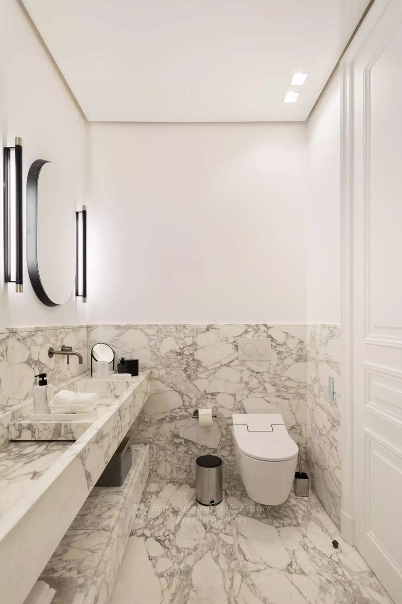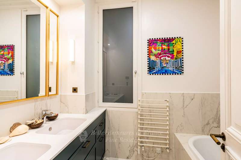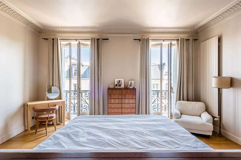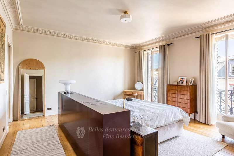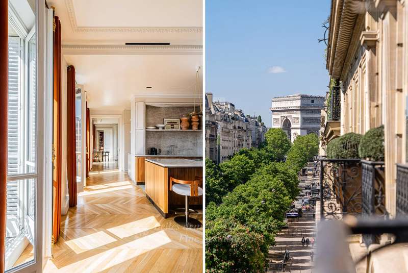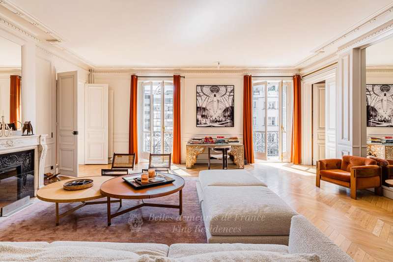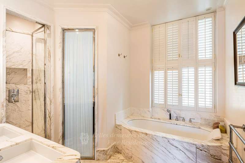 Leafy Parc Monceau. This near 400 sqm apartment on the 4th floor of a fine early 20th century freestone building has been renovated throughout in a tasteful contemporary style, and is in mint condition. Enjoying views of the park’s iconic railings and avenue Hoche, it includes an entrance hall, a living/reception room, a magnificent 72 sqm kitchen/dining room with a fireplace, a spacious master suite with a bathroom and a dressing room, four further bedrooms with bathrooms, a recreation room and a study.