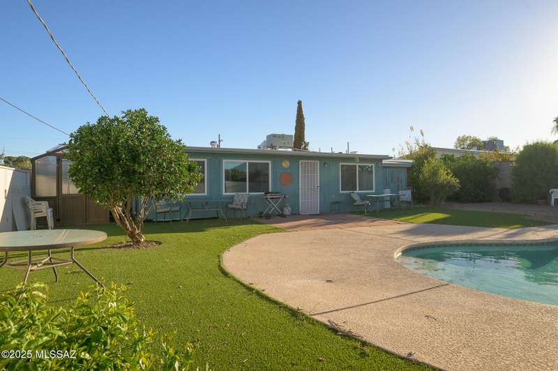 Welcome to 8525 E 3rd St! Situated in a peaceful cul-de-sac, this lovely home offers both everyday comfort and room to gather. With 3 bedrooms, 2 baths, a den, and an Arizona room, the flexible layout adapts easily for a home office, guest space, or recreation room. Natural light fills the living areas, creating a warm, easygoing feel throughout. Step outside to your private backyard with a sparkling pool, mature trees, and mountain views, ideal for relaxing or entertaining. Walking distance to schools and close to shopping, dining, parks, and just 15 minutes to Saguaro National Park East. Ready for its next chapter!
