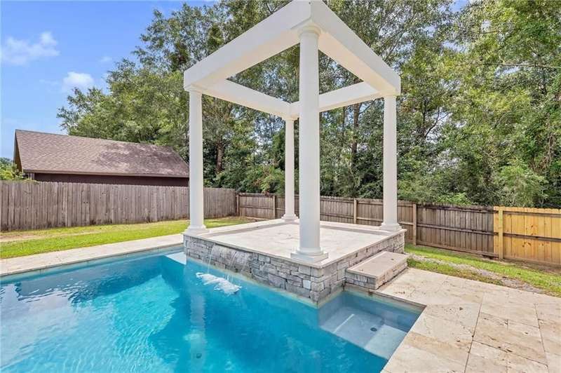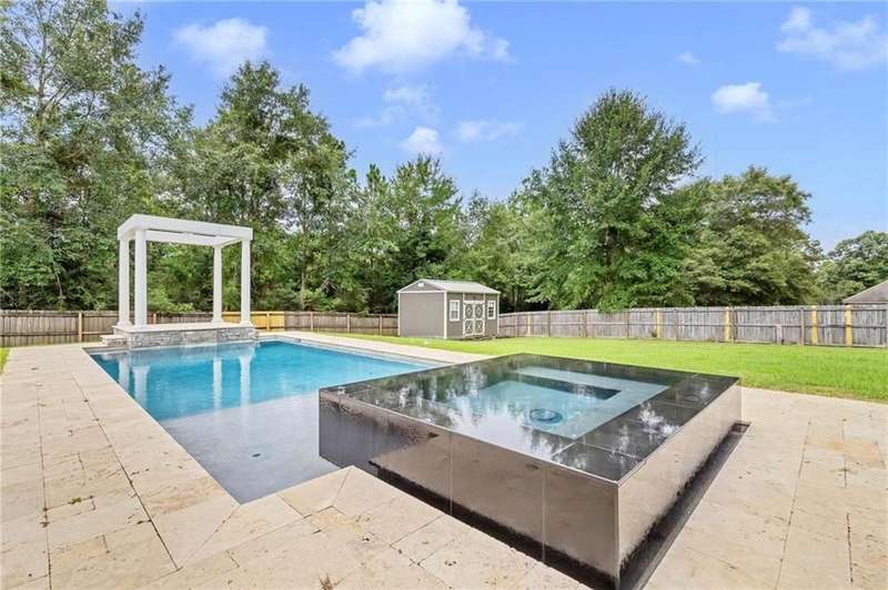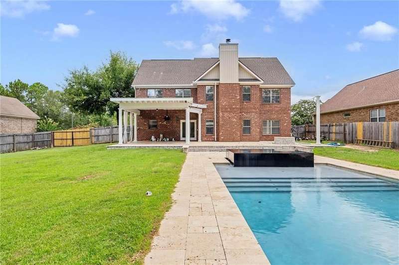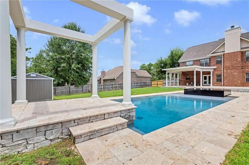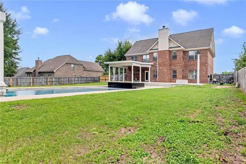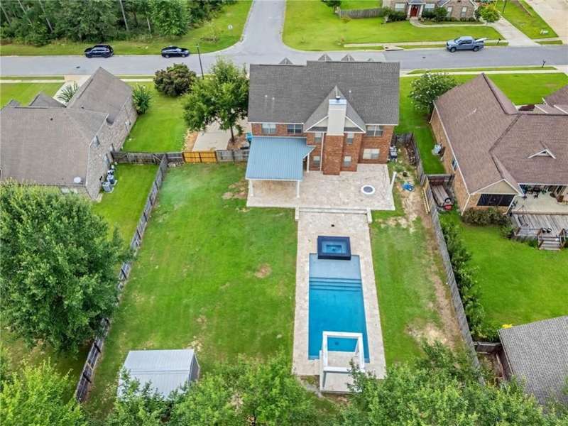 Outdoor Living at Its Finest in Cambron! This stunning 5-bedroom, 4-bath home with a generously sized lot and boasts a resort-style backyard you'll never want to leave. Imagine summer days lounging by your gunite pool, unwinding in the sleek black hot tub, or listening to the gentle sounds of the cascading waterfall- all framed by lush landscaping and total privacy. The show-stopping outdoor oasis also features a charming Italian-style gazebo with elegant arches, creating the perfect setting for sunset dinners, weekend gatherings, or a peaceful morning coffee surrounded by blooming jasmine. With ample space to entertain, play, and relax, this backyard is more than a feature-it's a lifestyle. Inside, you'll find 2,804 square feet of fresh, stylish living. The entire interior has been professionally repainted, and a brand-new back door offers easy flow between indoor and outdoor living. Soaring ceilings elevate the great room and bedrooms, while a stately fireplace adds warmth and character. The kitchen is filled with natural light and offers generous counter space and cabinetry, ready for everyday life or festive hosting. Five spacious bedrooms, including a luxurious primary suite with a private sitting area, trey ceilings, and a spa-like bath, offer room for everyone. A dedicated office provides convenience for work-from-home needs, and four full bathrooms ensure comfort and functionality for family and guests alike. This home blends elegance, space, and unmatched outdoor living-all in the desirable Cambron neighborhood. Come experience the ultimate mix of comfort and resort-style relaxation. Buyer to verify all information during due diligence.