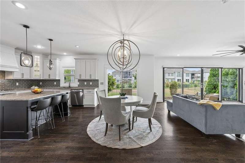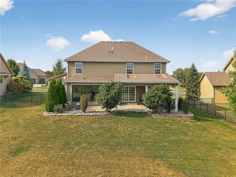 Award-winning Casa Bella floor plan with elevated finishes and exceptional functionality! Main level features a grand kitchen with granite island, walk-in pantry, butlers pantry, and open great room with gas fireplace and built-ins. Natural light pours in through a wall of windows overlooking the fenced yard and covered patio. Formal dining, private office/flex space, mud room, and powder bath complete the main level.Upstairs boasts a spacious primary suite with luxury bath, walk-in closet, and dual sinks, plus three additional bedrooms with ensuite and a Jack & Jill bath and convenient laundry.The finished lower level is perfect for entertaining or extended family, offering a full 2nd kitchen with stainless appliances, wet bar, full bath, bedroom, and storage.Enjoy outdoor living with a covered patio, grilling space, and a large flat yard. Three-car garage included. Move-in ready and designed for everyday living + hosting in style!