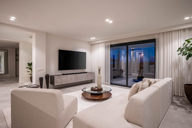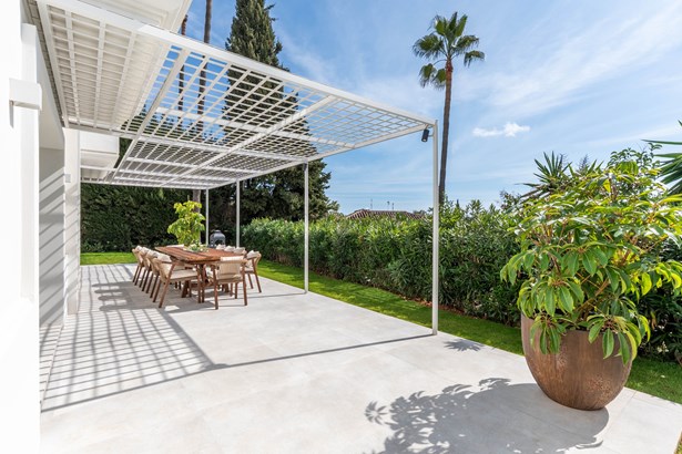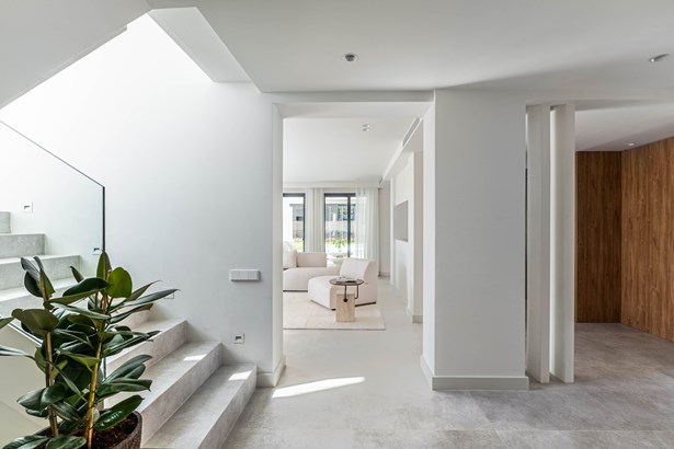Welcome to Villa Estrella, a refined contemporary haven nestled in the prestigious Nueva Andalucía. Just five minutes from iconic Puerto Banús, this beautifully renovated home effortlessly blends modern design with Mediterranean warmth.Inside, a bright open-plan layout connects the sleek kitchen, elegant dining area, and a cozy lounge that opens onto sun-soaked terraces and lush landscaped gardens. Every detail is crafted for comfort, style, and seamless indoor-outdoor living.Outdoors, enjoy expansive spaces perfect for entertaining: a private pool, multiple chill-out zones, and a covered terrace ideal for alfresco dining — all set against stunning views of the sea and surrounding hills.Upstairs, three spacious ensuite bedrooms offer peace and privacy. The main suite is a luxurious retreat, complete with a walk-in wardrobe and a panoramic terrace that captures the beauty of the Mediterranean.Set in the heart of golf valley, close to fine dining, top schools, and Marbella’s best