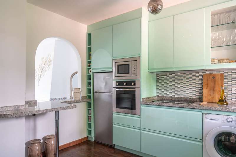 Welcome to a home that offers tranquility, greenery, and charm, like something out of a fairytale. This beautifully maintained townhouse is located in a quiet and lush residential area, with a private garden backing directly onto a beautifully kept green zone. The views are open and verdant, but not overlooking walkways – ensuring privacy and peace. The property is spread over two levels, with a practical yet cozy layout. Upstairs, you'll find two spacious bedrooms on opposite sides of the house, offering privacy for family members or guests. Each bedroom has its own bathroom, providing added comfort. On the entrance level, a charming living room with a fireplace welcomes you, alongside a semi-open, modern kitchen. From the living room, doors open out to your private green garden, ideal for sunbathing, relaxing, or enjoying a barbecue in peace. Every window in the house offers lovely views of the surrounding nature. The entire urbanisation feels like a postcard: green, lush, peaceful,