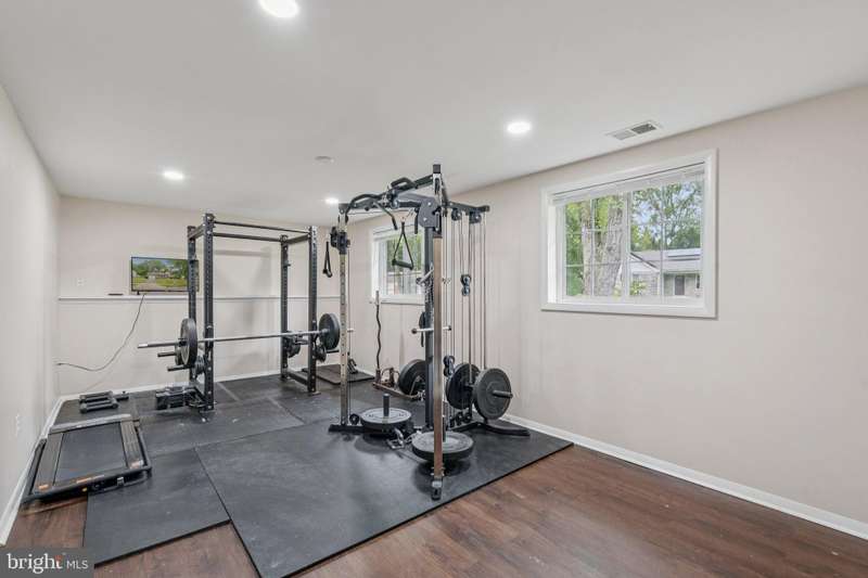 Beautifully remodeled split-level home in the desirable Franklin Square community! This move-in ready home features 3 bedrooms, 2 updated bathrooms, and gorgeous hardwood floors throughout the main level. The modern kitchen with stainless steel appliances opens to the dining area and a large deck overlooking the fenced backyard-perfect for relaxing or entertaining. The fully finished lower level offers a spacious family room, bonus room, and separate laundry area with washer and dryer. Major updates include roof and HVAC (2022). Conveniently located near parks, shopping, dining, and commuter routes. Truly turnkey and ready to welcome its next owner! Loan assumption is available at 5.125% payment $3112 and 424k remaining loan balance.