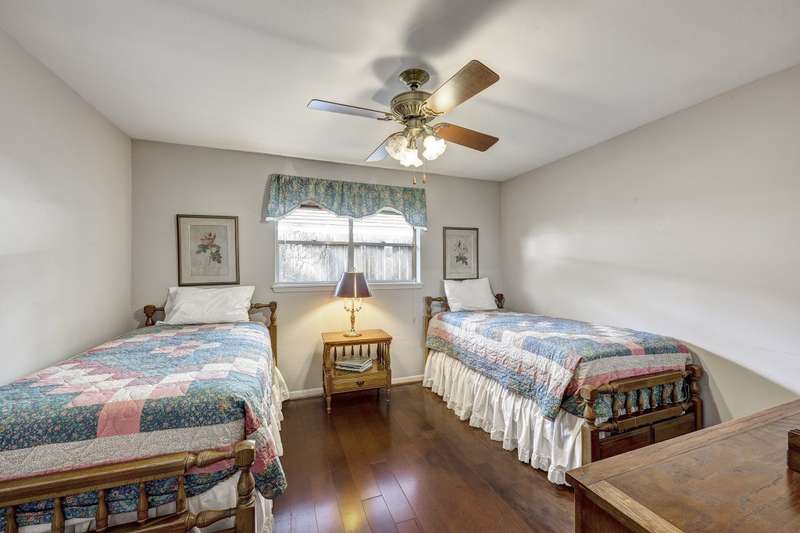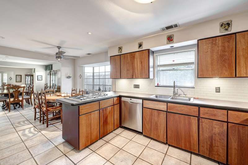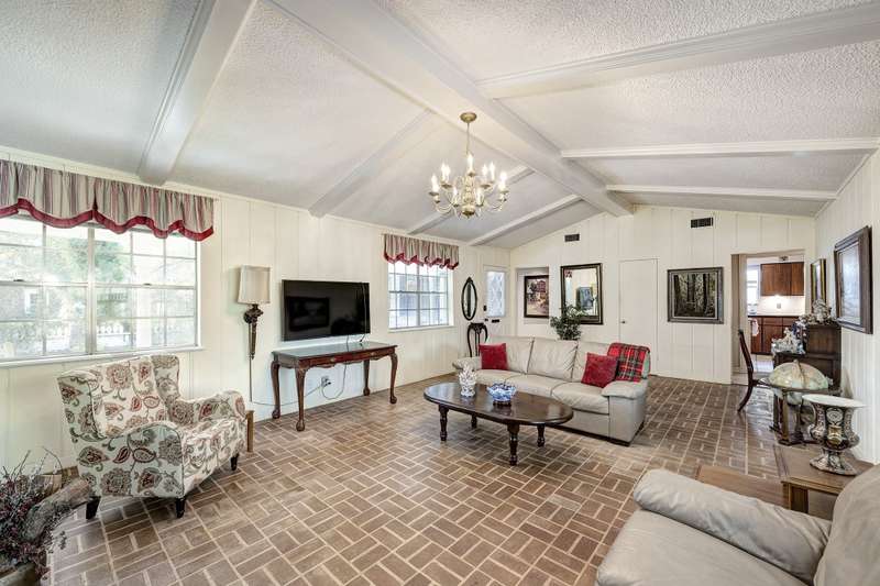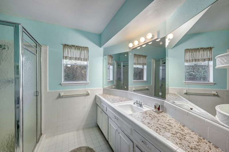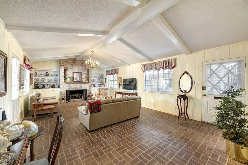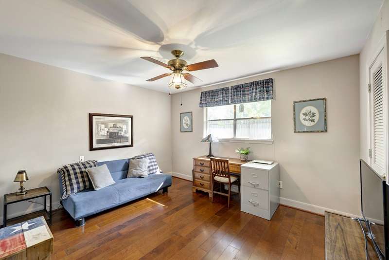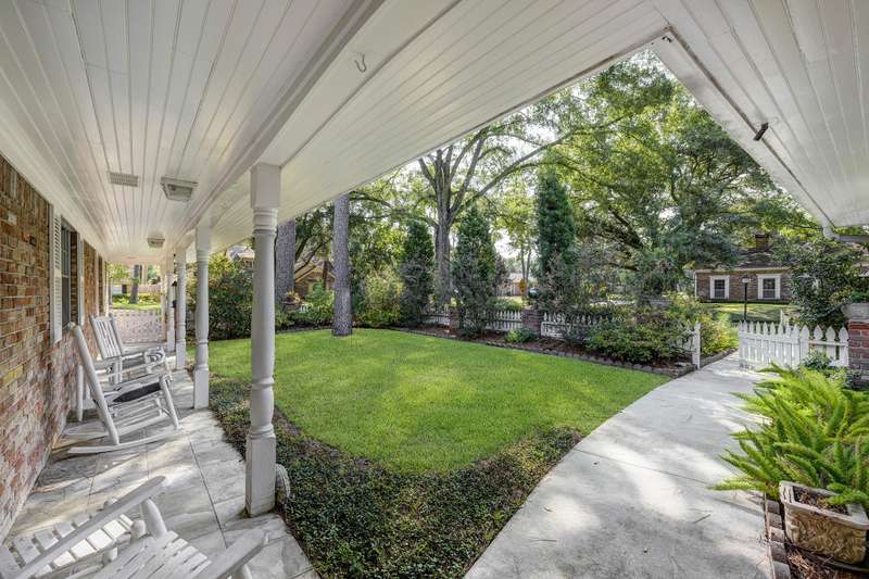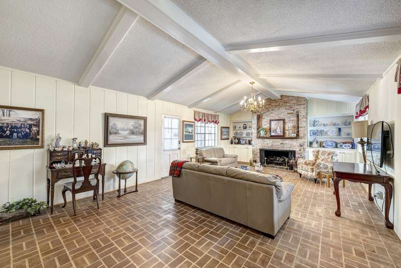 Such an inviting & charming home sitting up high on a beautiful, elevated corner lot w/wide covered porch to sit & relax under a cozy canopy of trees! Sidewalks lead to front & side of front porch. Enter home into large family rm w/high cathedral, beamed ceiling, tall brick fireplace w/gas logs, wall of blt-ins, & 3 large windows w/views of front & back yards! Formal living has surrounding windows viewing front yd & dining room opens to breakfast & kitchen w/slate counters, subway tiles, under counter lighting, & handsome smooth front, stained cabinets w/great pull-out drawers, gas cooktop, & SS dbl convection ovens. Primary is spacious w/sitting area. Engineered wood & tile flrs, 4 fans, shutters, AC/Heat ‘19, hardi-plank most of back. Rear covered slate patio, & garage w/blt-ins! Large side yard. Beautiful Park in woods at end of street! Bayou Trails near exit to BGP. Close to Beltway 8, Memorial, Medical & City Centre! All info per Seller