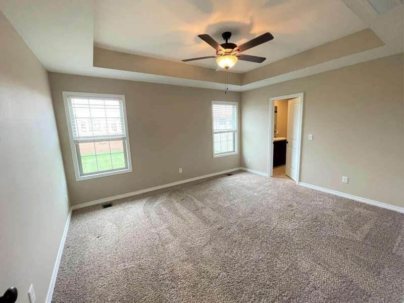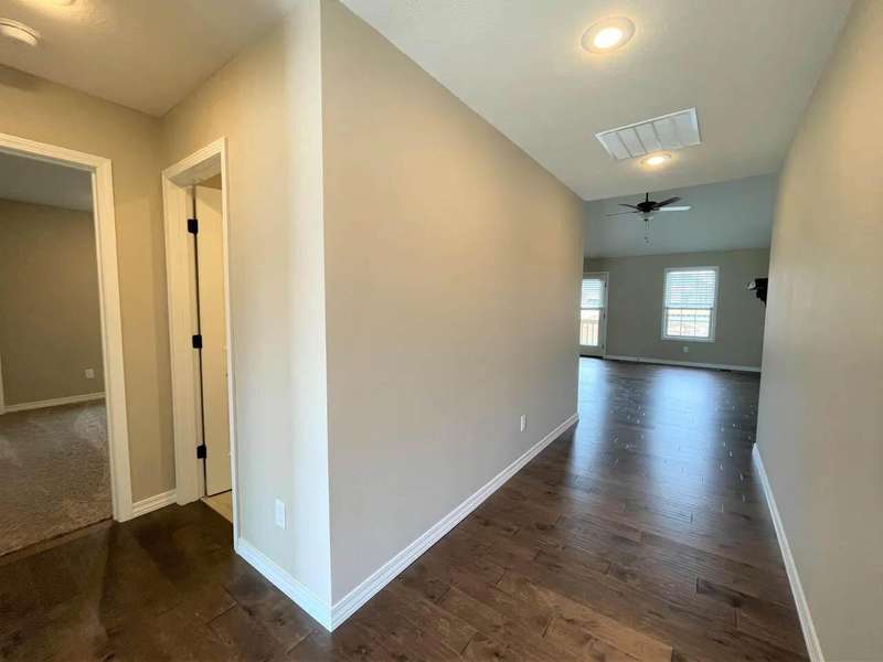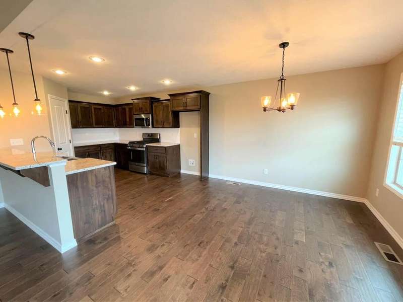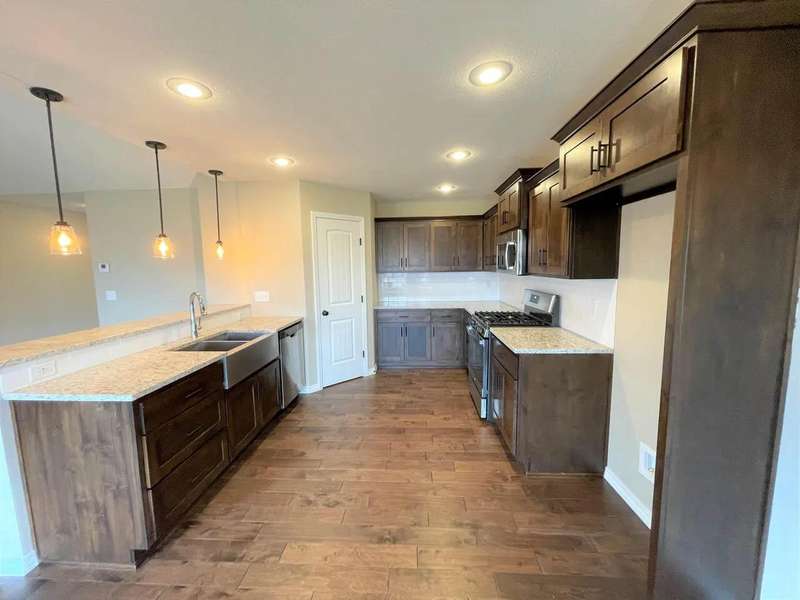 Beautiful 3 bedroom 2 bathroom home with a fenced in yard and a three car garage. Split bedroom floorplan with an open kitchen and living room. The kitchen has a steel farmhouse sink, gas range, and pantry. Granit counter tops in the kitchen and bathrooms. Large laundry room that connects to the master bathroom through the master closet. The front yard has an irrigation system.