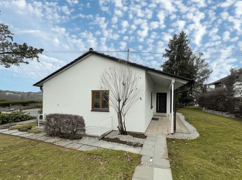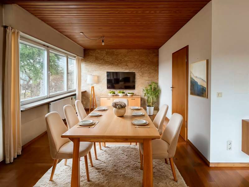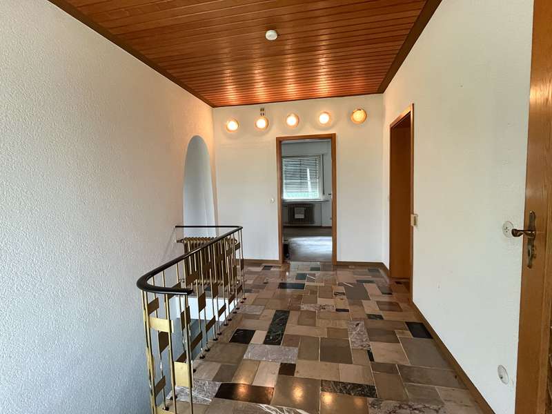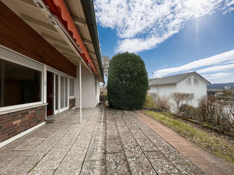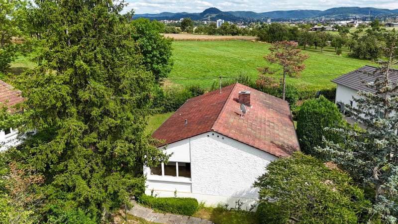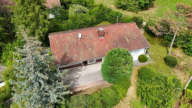Charming bungalow with potential: Large plot with the option to extend or add a storey. This charming, single-storey detached house with a living space of approx. 116 m² is situated on a generous plot of around 1000 m². This property, which was built in 1960, offers enough space for comfortable living in a quiet location directly adjacent to nature. The house has a total of 4 rooms, a hallway, kitchen, bathroom and WC. The house offers you the wonderful opportunity to modernize it according to your own ideas and to design it individually. From the spacious entrance area with checkroom, you enter the kitchen on the right. The living room, bedroom, children's room and office can also be reached from this hallway. The bathroom is equipped with a shower, bathtub and WC and has a window that provides natural ventilation and pleasant daylight. A separate guest WC completes the sanitary facilities. The open-plan living area impresses with its elegant parquet flooring, which contributes to a special living ambience. The kitchen, which is suitable for conversion, allows the design of an open-plan kitchen-living room, which increases comfort and provides a central point for creative cooking evenings. The house has an almost complete basement and offers two cellar rooms and a laundry room in the basement. The storage room is ideal as a hobby/multi-purpose room. A small workbench is already available in the boiler room. A large terrace, equipped with an awning, invites you to linger outdoors and enjoy the view. The double garage offers space for 2 cars. The bungalow is heated by an oil-fired central heating system (built in 2000). Living space on one level, with a large and almost flat plot. Access from 2 sides. In addition to the existing area, this attractive bungalow offers potential for extensions such as an extension or an additional storey, so that the future owners can realize their individual living dreams and thus generate additional living space. Don't miss out on this opportunity and arrange a viewing to get to know this special collector's property. +++ Please understand that we can only respond to inquiries with COMPLETE personal details (full address, telephone number and e-mail) +++