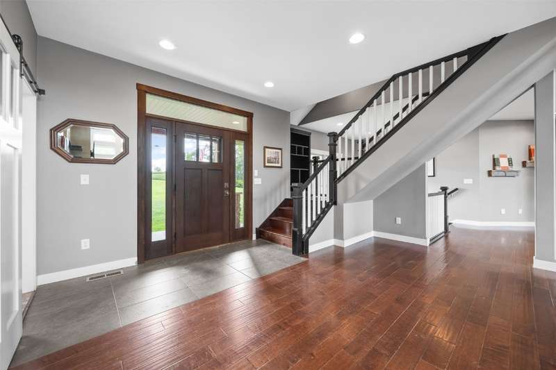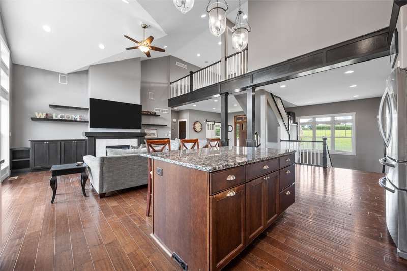 Escape to your own private sanctuary in this stunning custom-built estate, nestled on 5 peaceful, timbered acres. Tucked at the end of a long, private driveway, this home offers the perfect blend of luxury, privacy and tranquility. The grand great room, with soaring ceilings and a cozy fireplace, flows seamlessly into the chef’s kitchen ideal for both intimate meals and larger gatherings alike. The primary suite is it's own retreat, complete with a luxurious soaker tub, walk-in shower, large walk in closet and access to a peaceful deck access overlooking the woods. An additional bedroom on the main level boasts another private ensuite with walk in closet, while a lofted bonus area that overlooks the great room is wonderful flex space that has so many functional uses. The fully finished walk-out basement is a true extension of the home, offering space for entertainment or relaxation. Don't miss out on this rare find!