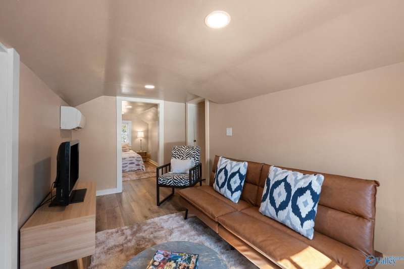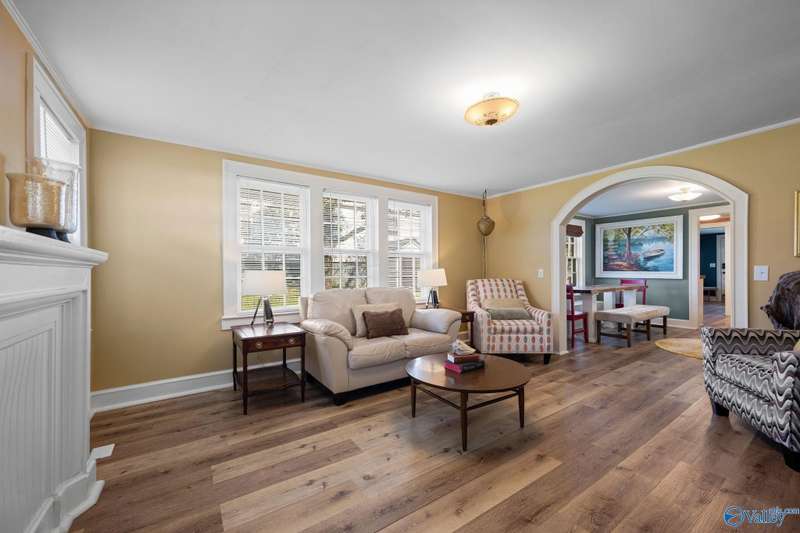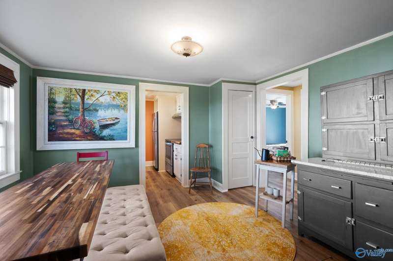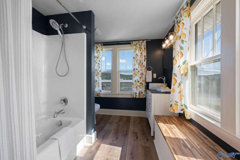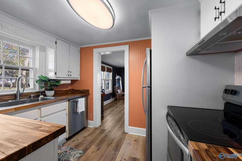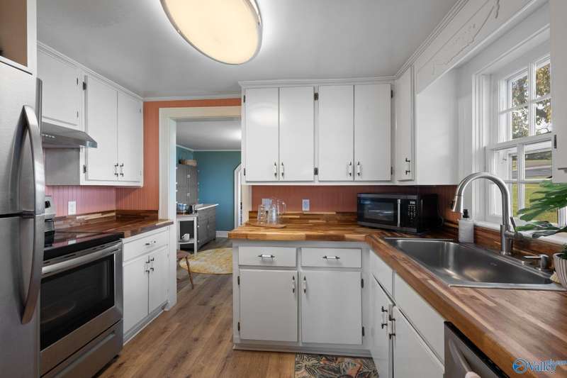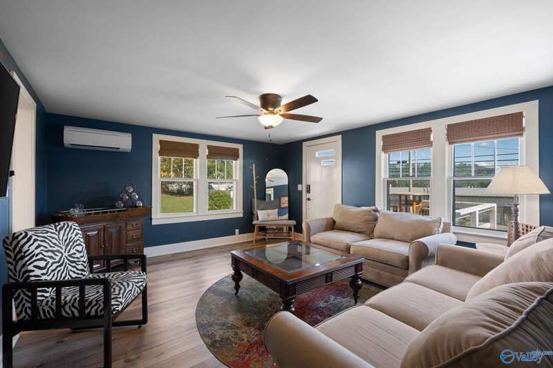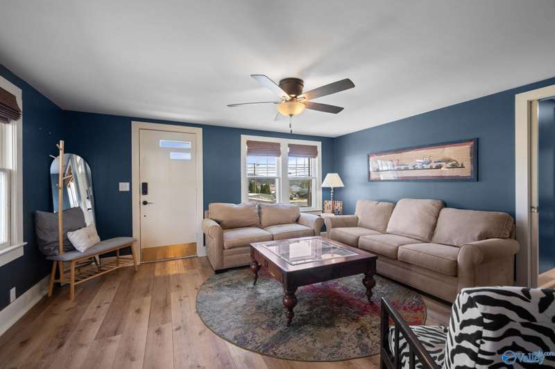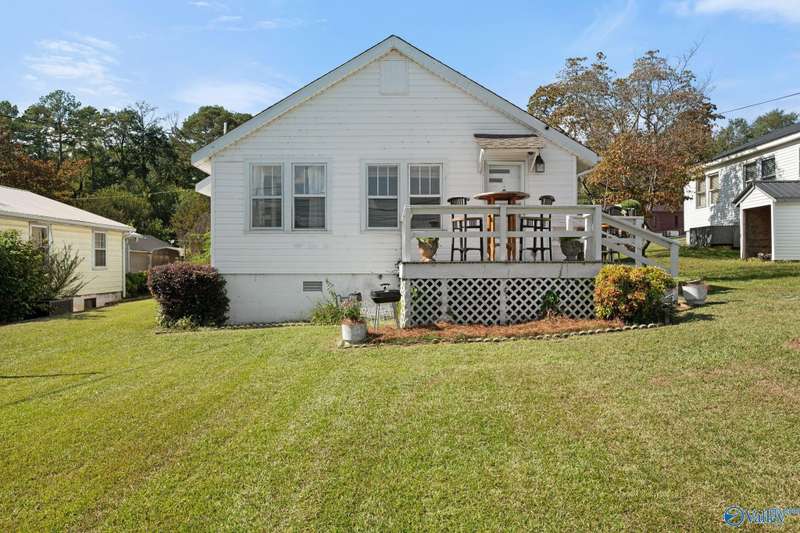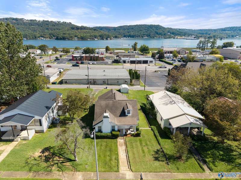 Adorable cottage style home in Guntersville City Limits. Fully renovated 3BR/2BA offers two family rooms, formal dining, full kitchen, laundry room, and beautifully updated baths. Improvements include all new LVP, fresh paint, all new electrical, all new plumbing, butcher block countertops, new sinks, updated lighting, washer and dryer, and more. Primary and second bedrooms are on the main level with a third bedroom, den and walk in closet upstairs. Enjoy the adorable front porch and a spacious back deck designed for entertaining family and friends. Currently a successful Airbnb with strong booking history. Just minutes to downtown, lake access, marinas, shopping, eateries, and City Harbor!