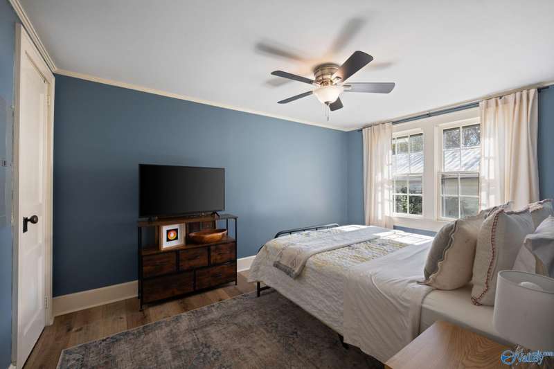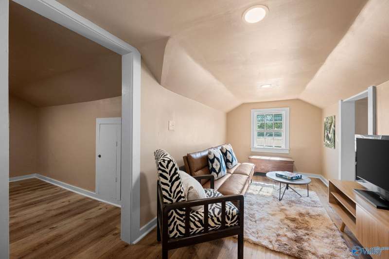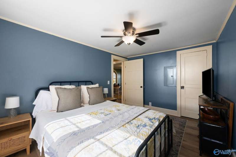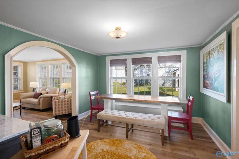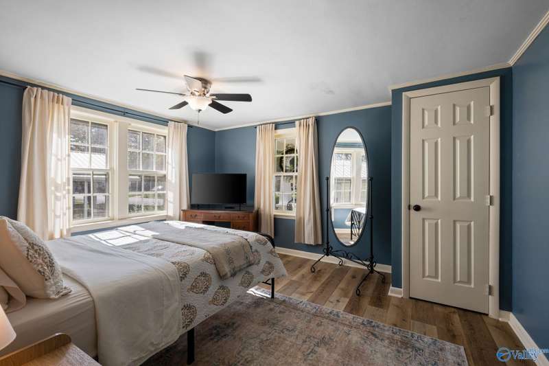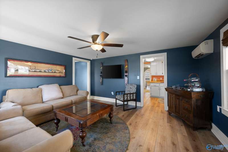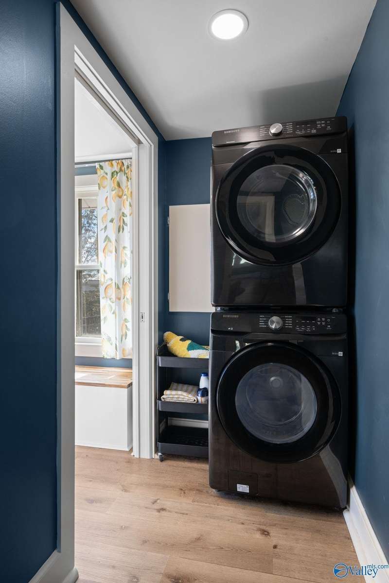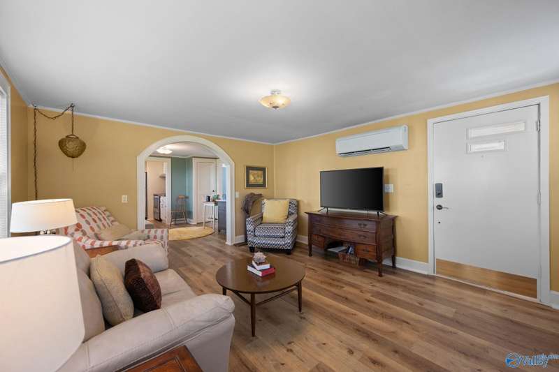 Adorable cottage style home in Guntersville City Limits. Fully renovated 3BR/2BA offers two family rooms, formal dining, full kitchen, laundry room, and beautifully updated baths. Improvements include all new LVP, fresh paint, all new electrical, all new plumbing, butcher block countertops, new sinks, updated lighting, washer and dryer, and more. Primary and second bedrooms are on the main level with a third bedroom, den and walk in closet upstairs. Enjoy the adorable front porch and a spacious back deck designed for entertaining family and friends. Currently a successful Airbnb with strong booking history. Just minutes to downtown, lake access, marinas, shopping, eateries, and City Harbor!