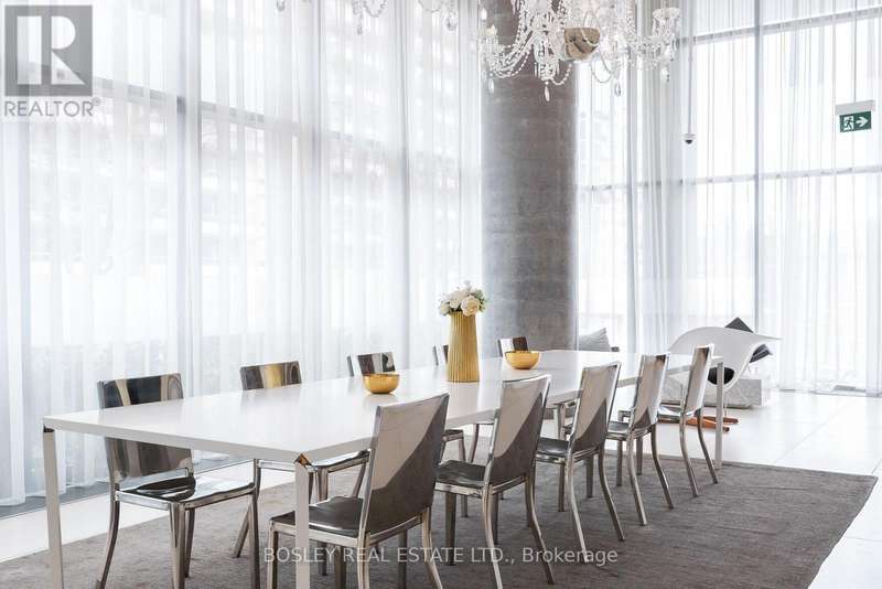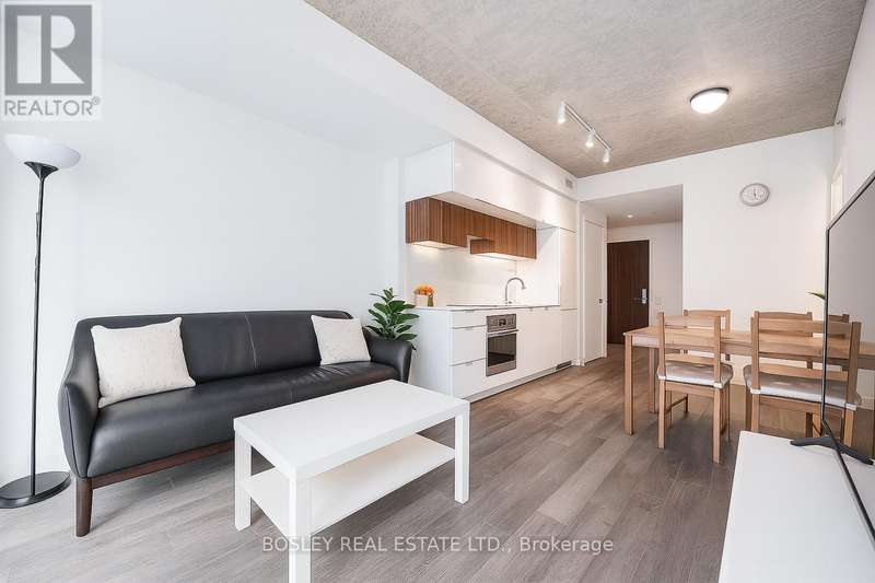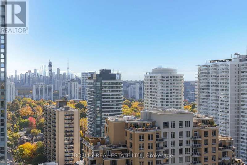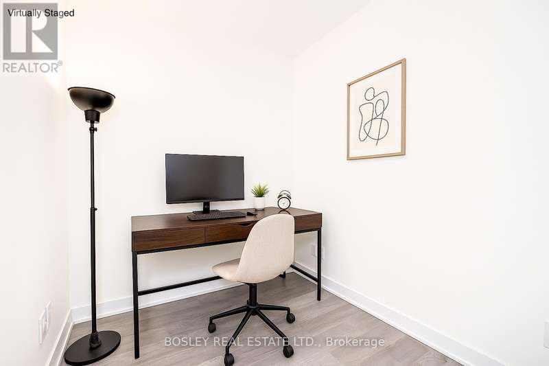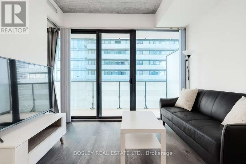 This bright and well-designed 1 bedroom + den suite offers a seamless open-concept layout that flows effortlessly from the entryway through the kitchen, dining, and living areas. Floor-to-ceiling windows span the suite's width, bringing in plenty of natural light. The bedroom features double sliding closets, providing ample storage, while the versatile den is ideal for a home office or reading nook. Step onto the balcony conveniently positioned between the bedroom and living room, to experience a well-balanced indoor-outdoor space. Take in west-facing views that stretch north and south-you can even spot the CN Tower Additional highlights include a large front hall closet, ensuite laundry and a smart Nest thermostat for personalized comfort. Residents enjoy top-tier amenities: a fully equipped Gym and Yoga Studio, a Rooftop Pool and Hot Tub, BBQ Terrace, Sauna, Billiard's lounge, spacious Party Room, Bike Storage, and 24-hour Concierge Service. All of this is located in one of Toronto's most vibrant neighbourhoods, surrounded by top restaurants, shops, and cafés, just steps from the Eglinton Subway and future LRT for easy access across the city. A stylish suite, an exceptional building, and a lifestyle that truly elevates everyday living. Welcome home.