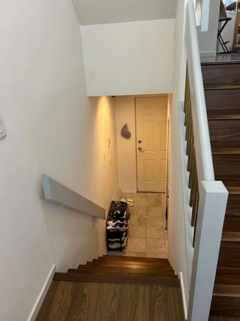 Rare high ceiling townhouse near center of Richmond. Spacious 3 bedrooms and 2.5 bathrooms freshly painted. 3 level split : 12' high ceiling living room with laminated floor on main level with huge deck. Few steps up to the dinning area and kitchen. 3 bedrooms on the top. Strata updates include roof, exterior paint, balcony & fence. Walk to famous top tier Palmer Secondary & General Currie Elementary School, Garden City shopping mall and minutes' drive to Richmond Center & Walmart supercenter. Open House 2 - 4 pm Sunday Sept 28