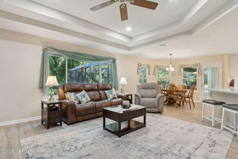 BEAUTIFUL AND WELL-MAINTAINED HOME IN QUIET NEIGHBORHOOD OF AMELIA VIEW. OPEN FLOOR PLAN WITH A LARGE KITCHEN AREA WITH PLENTY OF CABINET SPACE. EATIN KITCHEN AND FAMILY ROOM COMBO. FORMAL DINING ROOM AND LIVING ROOM, WITH AN ADDITIONAL OFFICE SPACE. OWNERS SUITE IS ON THE BOTTOM FLOOR SEPERATE FROM THE OTHER TWO BEDROOMS. THERE'S A LARGE LOFT BEDROOM WITH IT'S OWN BATHROOM UPSTAIRS. BEATIFUL POOL AREA GREAT FOR ENTERTAINMENT. THE ROOF AND THE HVAC REPLACED IN 2025.