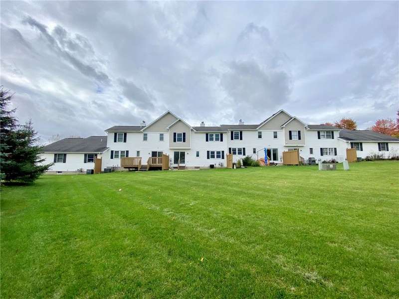 Welcome home to this stunning and beautifully updated 3-bedroom, 1.5-bath townhome located in the desirable Genesee Riverview community of Chili. This rare 3-bedroom unit truly reflects Pride of Ownership from top to bottom! Ideally situated close to RIT, U of R, MCC, shopping and dining, this home offers both comfort and convenience. Step inside to find a bright and inviting living space featuring soaring cathedral ceilings, gleaming hardwood floors, and a wood-burning fireplace. Skylights fill the home with natural light, creating a warm and open atmosphere. Enjoy new windows throughout along with new sliding doors (2021) The dining room opens to the living area, providing the perfect layout for entertaining family and friends. You'll love the eat-in kitchen with new appliances (2024), modern finishes, and plenty of granite countertop space along with a walk-in pantry. New water heater (2023) The front facing bedroom also boasts cathedral ceilings and generous space. The main bath, fully gutted and remodeled in 2022, is sleek and stylish. Enjoy outdoor living with sliding doors leading to an expanded back patio overlooking wide-open greenspace ? perfect for relaxing or hosting a summer BBQ. Additional highlights include clean, dry full basement, long flat driveway, ducts professionally cleaned in 2021, Wi-Fi thermostat. This move-in-ready home offers a blend of modern updates and timeless charm ? a true gem in a fantastic location! Delayed Showings 10/23 at 10am. Delayed Negotiations 10/28 at 3pm. Please make offers good for 24 hours.