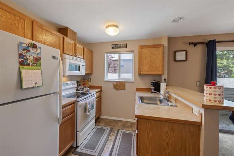 Impeccably maintained condo in the Perry District, close to schools, parks, shopping and downtown. On the main floor is the living room, a half bath that has been updated, the kitchen and informal dining room with slider to a covered deck. The kitchen has an eating bar and all of the appliances are included. Upstairs has two bedrooms, one with double closets and a full bath with tile tub surround. In the lowest level is the entry from the garage and the laundry room/mud room. heat is supplied by an electric furnace with a heat pump and A/C. There is a fire sprinkler system in the entire unit for your safety. HOA dues are $405.00 per month and include water, sewer, garbage, ground maintenance, snow removal and exterior building maintenance.