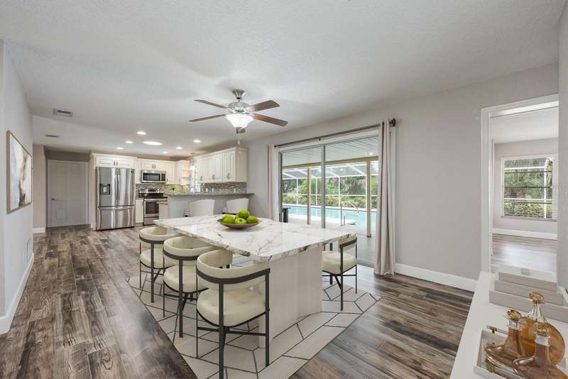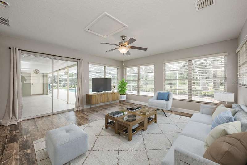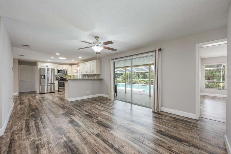 Under contract-accepting backup offers. One or more photo(s) has been virtually staged. Seller may consider buyer concessions if made in an offer ~ Welcome to The Trails/Tomoka Oaks Country Club Estates – where timeless curb appeal meets modern updates in this beautifully maintained single story POOL HOME! Major improvements have already been done for you: updated roof in 2016, followed by a NEW A/C & WATER HEATER (2020), along with VINYL PLANK WOOD FLOORING and a RENOVATED KITCHEN. The electrical panel has also been updated for added peace of mind, making this home truly MOVE-IN READY. Sitting pretty on a spacious .28 ACRE LOT with NO REAR NEIGHBORS and peaceful green space views of the former golf course, you get the desirable combination of privacy and a relaxed lifestyle. Inside, the flowing, light-filled layout features a SPLIT BEDROOM FLOOR PLAN and a versatile BONUS ROOM just off the pool area – ideal for a sunroom, home office, or even a 4TH BEDROOM. The heart of the home is the gorgeous kitchen, where timeless cabinetry, stone countertops, a complementary backsplash, STAINLESS STEEL APPLIANCES, and recessed lighting create a clean, modern space. A window over the sink frames the view of the lanai and OVERSIZED 40x16 POOL, which reaches a depth of 10’ – perfect to entertain or unwind. Multiple sliding glass doors open seamlessly to the COVERED LANAI and private backyard surrounded by mature trees and thoughtful landscaping creating an idyllic park-like setting to enjoy your outdoor space. A comfortable PRIMARY SUITE is tucked away on one side of the home with a WALK-IN CLOSET and en-suite bath, while two additional bedrooms and a second full bath sit on the opposite side, near the bonus room. The many windows throughout let in beautiful NATURAL LIGHT, creating a warm and welcoming feel in every room. Conveniently located near N Nova Road, US-1, I-95, and I-40, you are just minutes from shopping, dining, the Halifax River, and area beaches – offering the best of both worlds. Whether you are looking to settle in or escape to a coastal retreat, this home checks all the boxes. Call today to schedule a tour and fall in love with your new HOME SWEET HOME on Oakmont Circle!