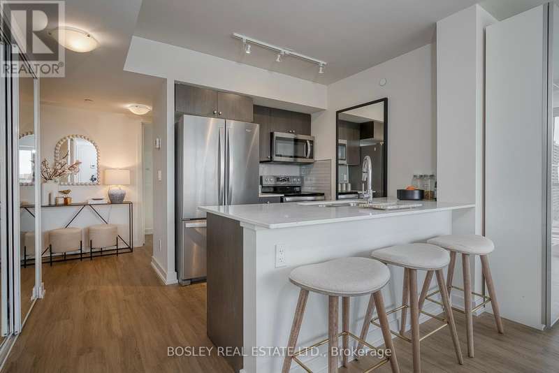 Welcome to The Village by Main, where urban convenience meets comfortable living in this spacious and light-filled 3-bedroom, 2-bathroom corner suite. Offering stunning northwest views and an ideal layout, this is a home you'll love coming back to. This beautifully designed condo features a split-bedroom floor plan, providing maximum privacy and functionality. Large, wall-to-wall windows flood the space with natural light and showcase sweeping city views. The living and dining areas are open and inviting, with newly installed luxury vinyl plank flooring adding warmth and style throughout. Step outside onto your private balcony and take in the incredible views the perfect spot to unwind at the end of the day. All three bedrooms are generously sized, offering plenty of space for rest, work, or growing families. Two full 4-piece bathrooms add convenience and comfort to everyday living. This unit also comes with one underground parking space and a storage locker, providing everything you need for easy city living. Located just steps from Danforth GO and Main Street subway station, commuting is effortless. Enjoy having shops, restaurants, parks, and all the vibrant energy of the Danforth right at your doorstep. A rare corner unit with unmatched views, space, and location. Amenities in the in the building include a Gym, Party Room, Media Room, Rec Room, Rooftop Deck (located on the 3rd floor), BBQ Area, Bike Storage, Visitor Parking, Indoor Parking, Security System and a nighttime Security Guard.