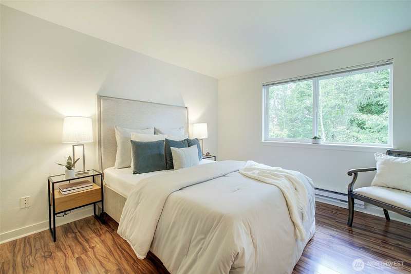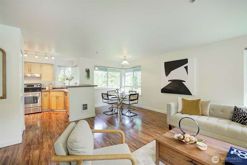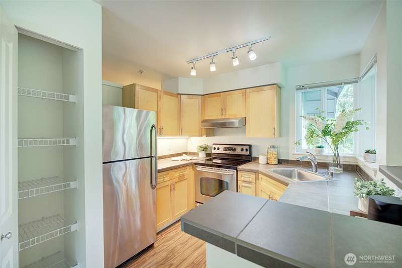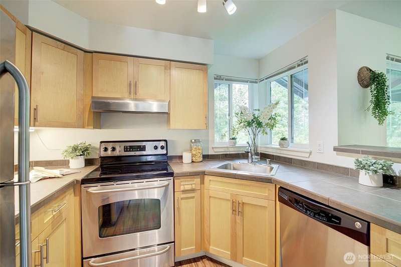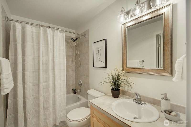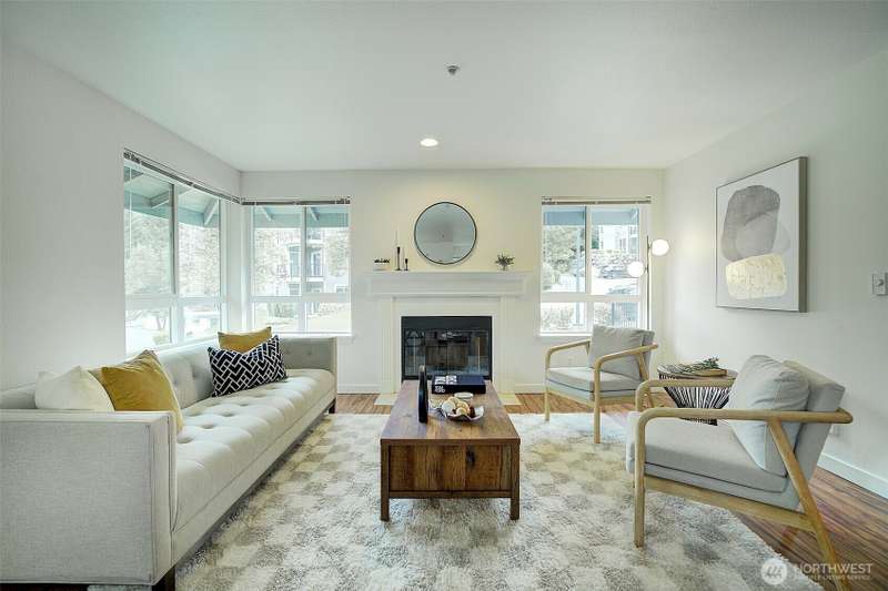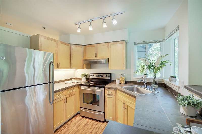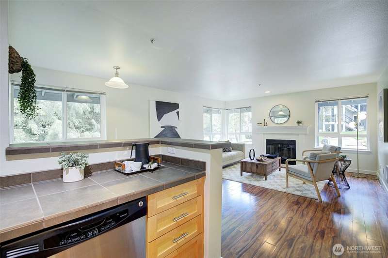 Welcome to this top-floor end unit in Cambria Hills! This light-filled home features fresh interior paint, an open floor plan, a spacious bedroom with a large walk-in closet, and a full bath. Enjoy abundant natural light and beautiful views from this well-positioned unit. The kitchen boasts SS appliances & seamlessly flows into a living room with a fireplace. Though it's a top-floor unit, it stands out for having NO STAIRS to climb, providing both convenience & privacy. A pet-friendly community has NO RENTAL CAP, making it an excellent option for homeowners and investors. Enjoy access to a cabana with pool, hot tub, fitness center, and party room. Located near scenic trails, local restaurants, & highly rated Northshore School District