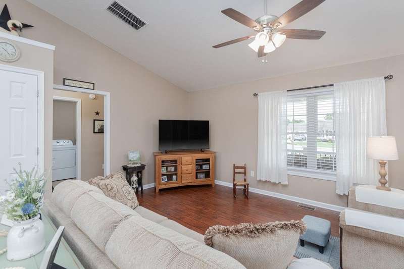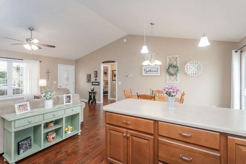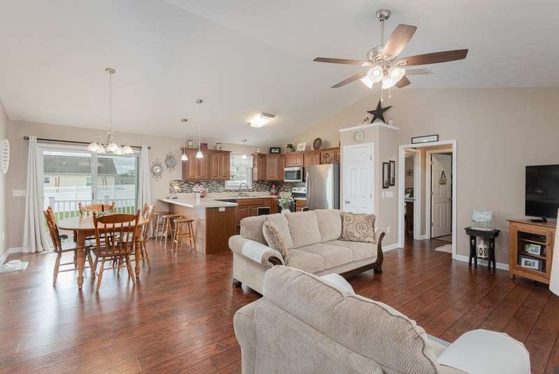 Built in 2014 and maintained to perfection, this spotless ranch home feels as fresh as new! Featuring a desirable split-bedroom floor plan, this 3-bedroom, 2-bath beauty offers both privacy and comfort. The open-concept living space is warm and inviting. Enjoy cooking and entertaining in the modern kitchen, complete with rich wood cabinetry, stainless steel appliances, and seamless flow into the dining and living areas. Both bathrooms are full-sized and well-appointed. Step outside to your vinyl-fenced backyard a spacious 0.39-acre lot perfect for relaxing, playing, or pets. The attached double-car garage offers convenience and extra storage. This home is truly move-in ready, just bring your personal touch and start enjoying all it has to offer!
