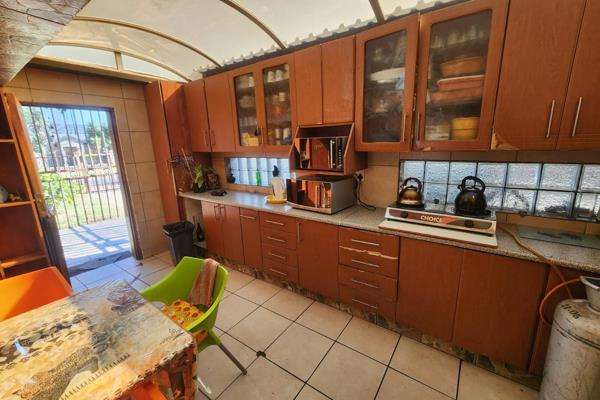 This spacious family home is packed with potential and offers everything you need for comfortable living: • 3 generously sized bedrooms, all with built-in cupboards. The main bedroom includes its own full en-suite bathroom for added privacy and convenience. • Two living areas – a formal lounge and a roomy family lounge that opens directly onto the pool area, perfect for relaxing or entertaining. • A fully equipped kitchen with a separate dining room – ideal for shared meals and family gatherings. • A linen cupboard in the hallway provides extra storage space. • A second bathroom fitted with a bath, basin, and toilet. • Single garage plus a large carport, with ample additional parking and two separate gated driveways for ease and security. • A spacious yard with a sparkling swimming pool – great for kids and summer fun. • Prepaid electricity to help you manage your energy usage more efficiently. • Located in a quiet, family-friendly neighborhood, yet conveniently close to schools, shops, and other essentials. • Excellent security, including armed response and perimeter beams, for peace of mind. The garage and family lounge can be easily converted into a flatlet with a private entrance – a perfect option for extended family or rental income. With a bit of TLC, this well-built home could be transformed into your dream space. Don’t miss out – this feature-rich, family-oriented property is a rare find!