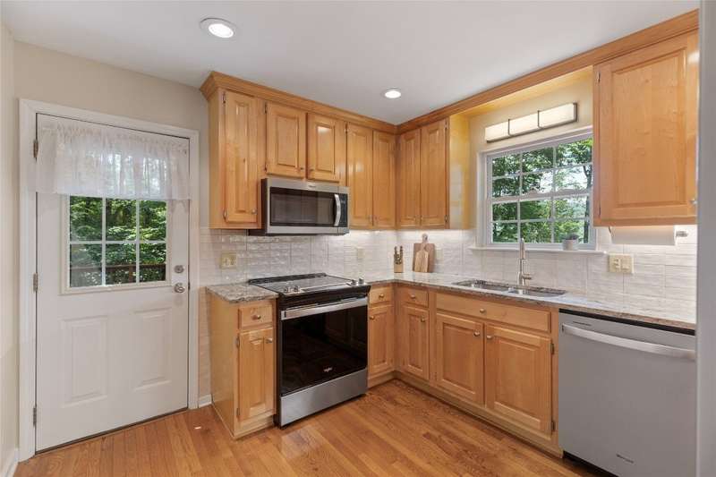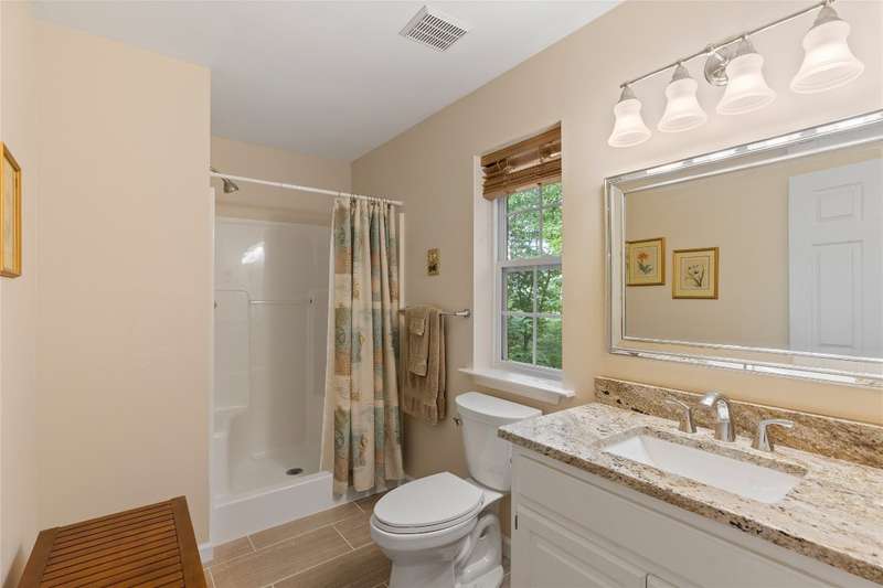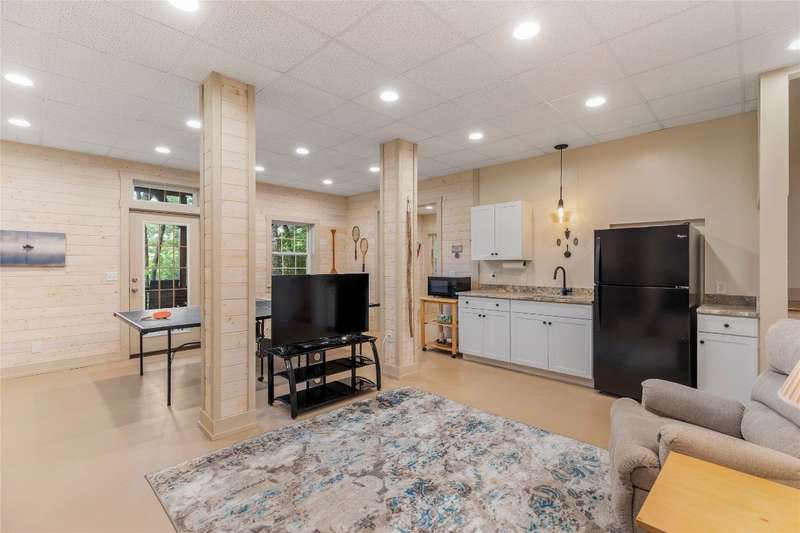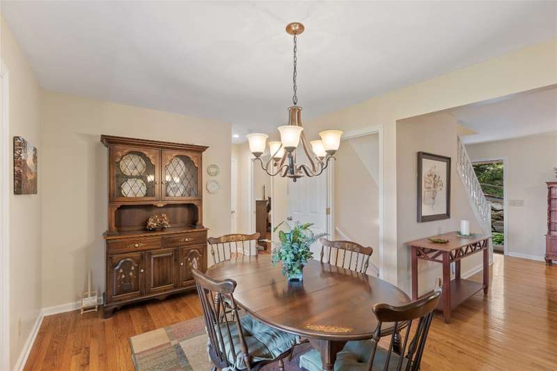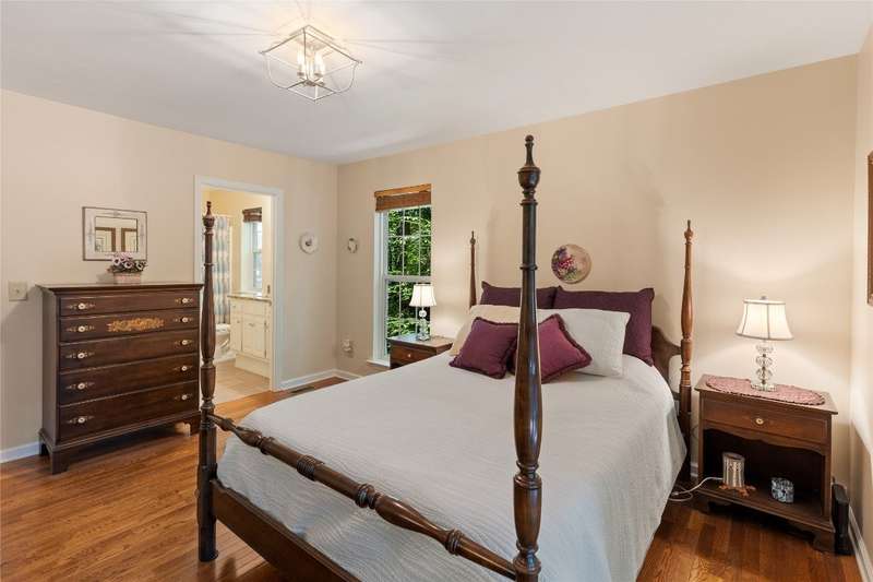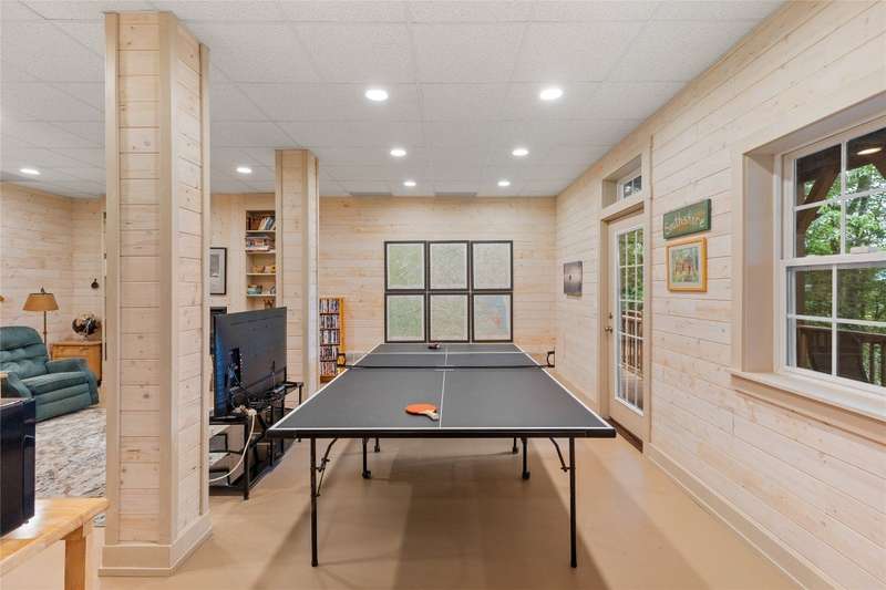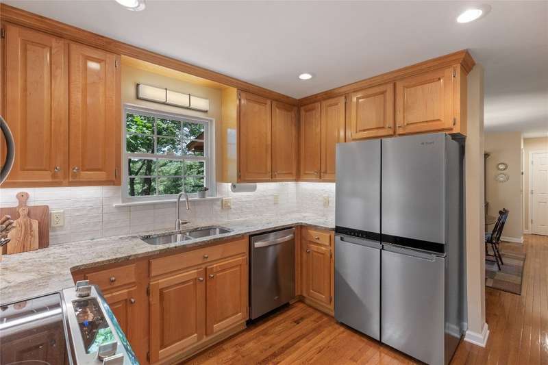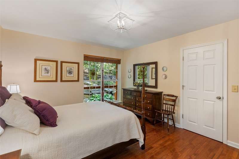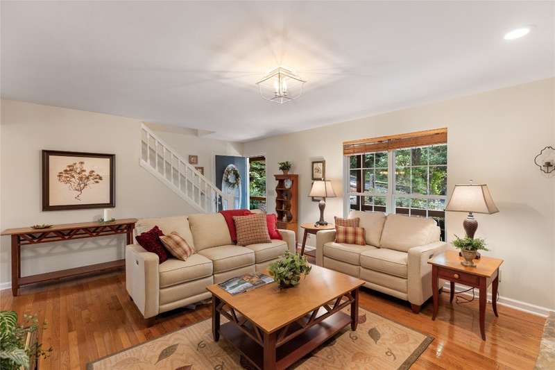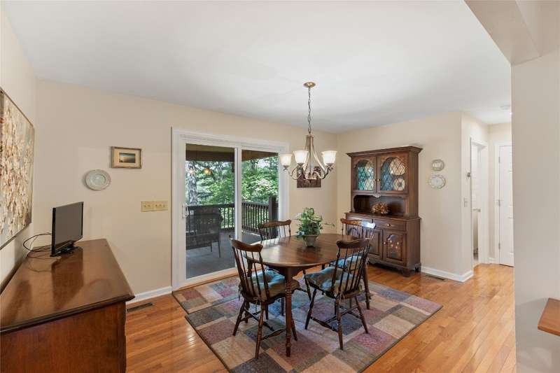 Perfectly positioned in the heart of the Highlands Cashiers Plateau, this inviting mountain retreat offers timeless charm and sweeping year-round views of both Chimney Top and Rock Mountains. Set on 1.09 acres with a canopy of mature hardwoods, the property combines natural beauty with exceptional privacy. Inside, the home welcomes you with a warm and spacious living area anchored by a striking stacked stone fireplace, ideal for cozy mountain evenings. The main level features a well-appointed primary suite designed for convenience and comfort. A beautifully refreshed kitchen flows into the dining area, where large windows frame the mountain landscape. A thoughtfully placed powder room completes the main floor. Upstairs, two guest suites each offer private baths and tasteful updates, creating a peaceful space for family or visitors. The walk-out lower level extends the living space with an oversized family room, its own fireplace and kitchenette, a dedicated home office, laundry area, and a half bath. A spacious workshop rounds out the level, offering ample room for hobbies or storage. Two levels of outdoor decks provide the perfect vantage points to take in the breathtaking mountain vistas and surrounding forest canopy, ideal for morning coffee, afternoon gatherings, or quiet evenings under the stars. Throughout the home, solid oak floors and premium porcelain tile underscore the quality craftsmanship and attention to detail. Immaculately maintained and carefully styled, this home reflects pride of ownership at every turn. The rear of the property directly adjoins Sapphire National Golf Club.