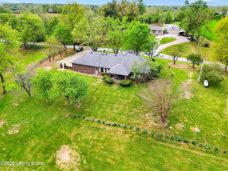 Welcome to your own slice of paradise in Bloomfield, KY! This charming brick ranch features 2 bedrooms and 2 full baths nestled on 10.87 acres of scenic beauty. The formal dining room could easily be converted to make a 3rd bedroom if needed. Once inside this home you will notice the gorgeous wood trim and beams in the vaulted ceiling being your first sign of this home being built with quality. The flow of the home and the layout are perfect. Seller is offering a $5000 credit to replace the tired flooring that is currently there. Need extra storage, an office, or a studio? There is a large room above the garage that could be finished out for that. The primary suite boasts a large walk-in closet and bathroom. Enjoy the tranquil setting with a pond right in your backyard, ideal for fishing or simply relaxing by the water or lake view from your back porch. The property also features a large heated and cooled workshop (formally a woodworking shop). If you're looking for a peaceful country living or an opportunity for your own mini farm, this property has endless possibilities. There is a hay barn and coral ready for farming or keeping livestock. Enjoy the convenience of the outbuildings for storage or hobbies and savor the taste of homegrown apples from your very own apple trees. This property is more than just a home; it's a lifestyle. Don't miss out on this unique and truly special home in Bloomfield! 7 minutes from the Chowning Boat Ramp at Taylorsville Lake...perfect for boating and fishing enthusiasts, 7 minutes to Historic Bloomfield, and 12 minutes to the Bluegrass Parkway.