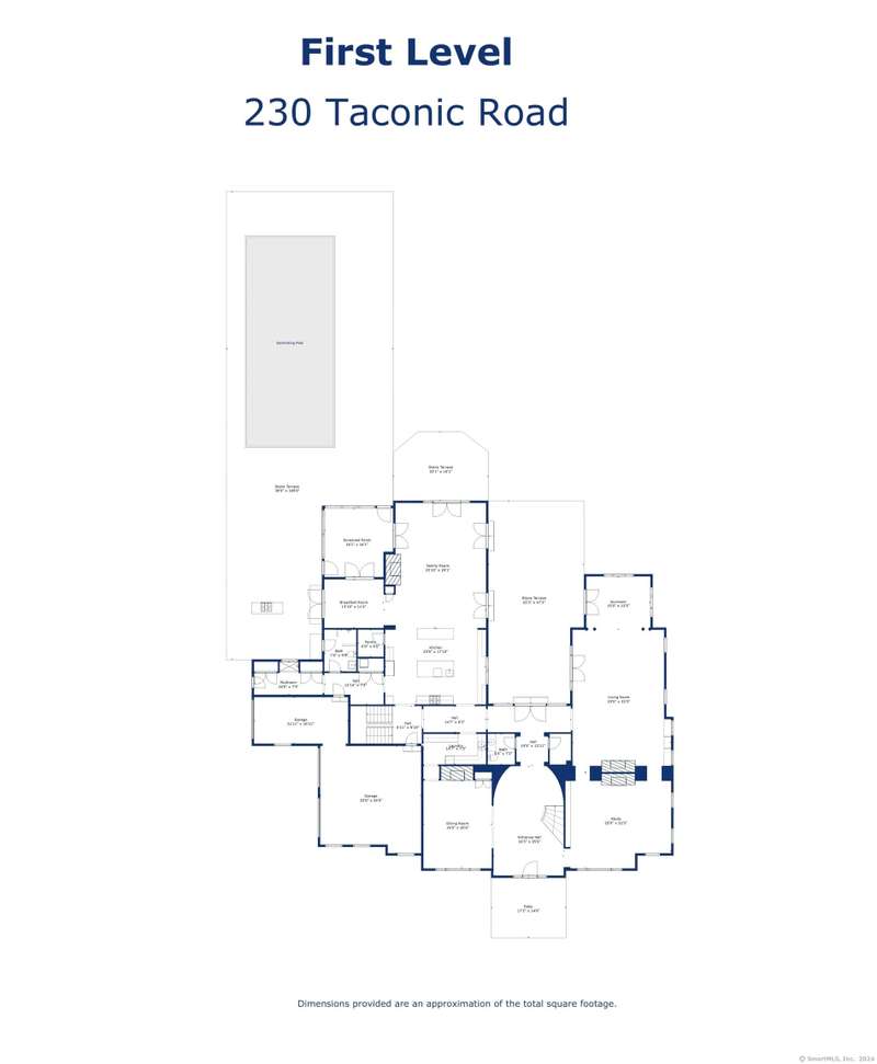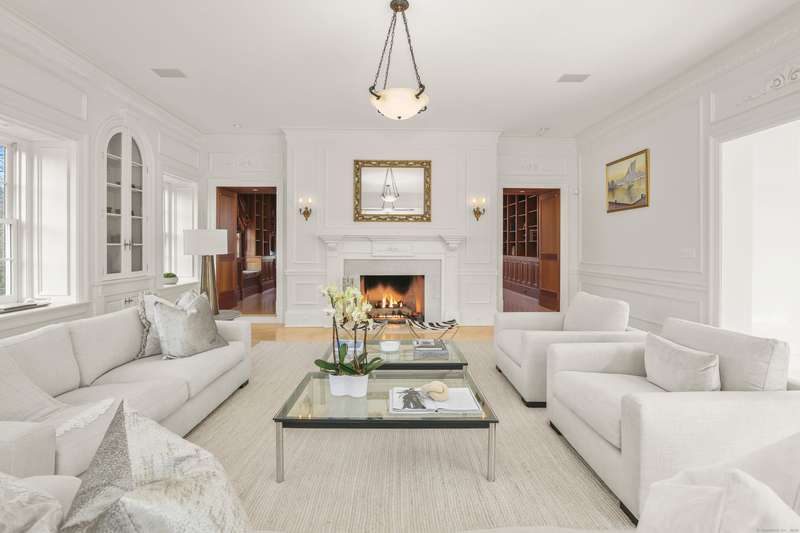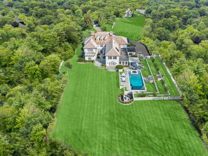 A timeless Connecticut Compound in mid-country Greenwich custom designed and built by a coveted team. Resting on 4.7 private level acres with a two bedroom guest house and barn/accessory garage. The sun-filled stylish interior features 10+foot ceilings, grand front-to-back entrance hall, refined living and dining rooms; large handsome library and five inviting fireplaces all with bespoke finishes. The gourmet kitchen and breakfast room seamlessly connect to three exposure family room perfect for gatherings. Five en suite bedrooms including primary suite with spacious terrace, sitting room and double walk-in closets and luxurious baths. Third floor space is open and bright for versatile use. The exceptional lower level has multiple recreation rooms, a wine cellar, potential media room, and space for arts & crafts. Outdoor spaces offer all the amenities to enjoy the seasons; pool, spa, fire pit, expansive lawns and combination of open & covered spaces for entertainment and relaxation. The guest cottage, fronted behind an old world stone wall, has a charming covered front porch and it's own driveway entrance. For driving enthusiasts there is garaging for 5 cars. A unique opportunity on a lovely country road close to schools and parks, 45 minutes to NYC.