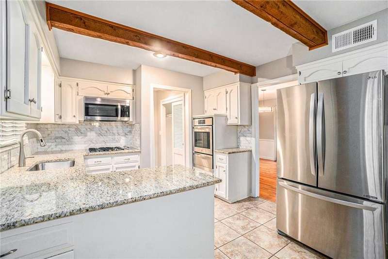 Located in one of the areas most desirable neighborhoods, this spacious 4-bedroom, 2 full bath, and 2 half bath home offers over 3,500 square feet of comfortable living. The classic side-by-side split design combines charm with functionality, featuring an exceptionally convenient layout and a 2-car garage. The main living room is warm and inviting with exposed wood beams, a stunning brick fireplace as the focal point, and built-ins on each sideperfect for both storage and display. The kitchen has been updated with new countertops, stainless steel appliances, ample cabinetry, and plenty of prep space, making it as functional as it is stylish. A light-filled dining area and eat-in breakfast nook provide the perfect spots for daily meals or hosting gatherings. The primary suite is generously sized with original hardwood floors and large windows that flood the room with natural light. Its updated ensuite bath feels luxurious with double vanities, a walk-in tile shower, and timeless finishes. Three additional bedroomseach with hardwood flooring, ample closet space, and access to spacious bathroomsoffer comfort for family and guests. The finished lower level is designed for entertaining and relaxation, complete with a large rec room, space for games or movie nights, and a full wet bar. Step outside to a fenced backyard featuring a concrete patio, mature trees, and plenty of room for pets, play, and outdoor entertaining. This home truly blends convenience, space, and lifestyledont miss your chance to make it yours!