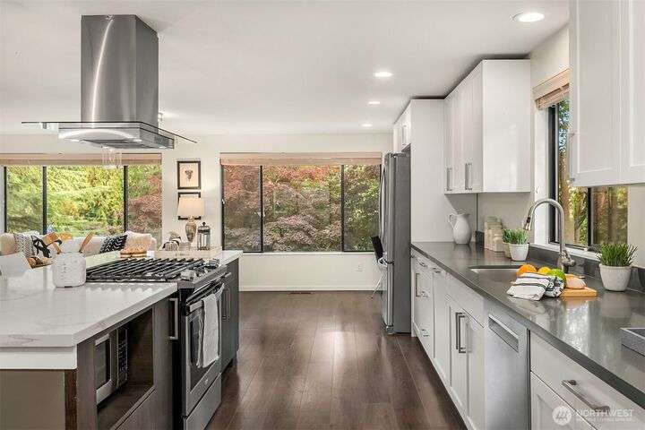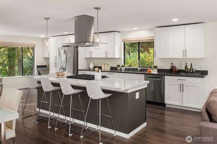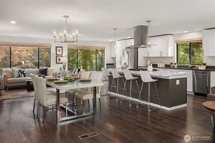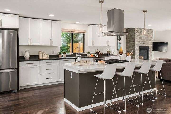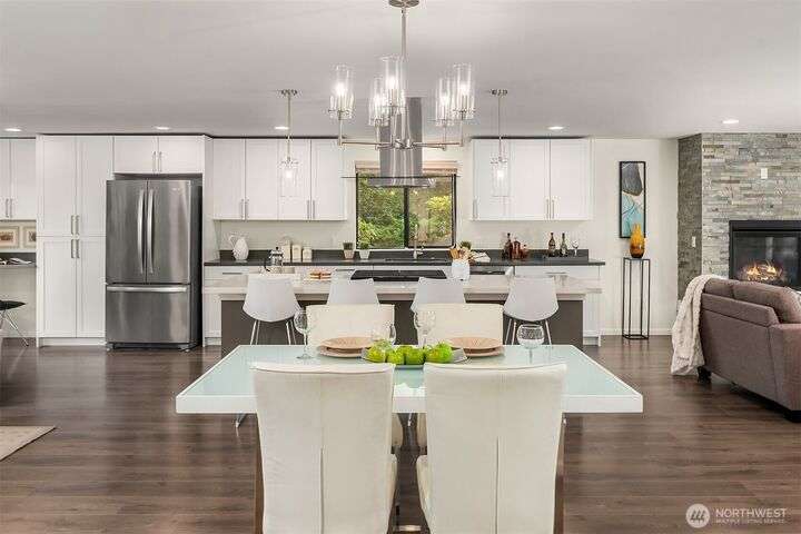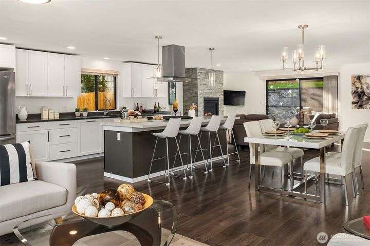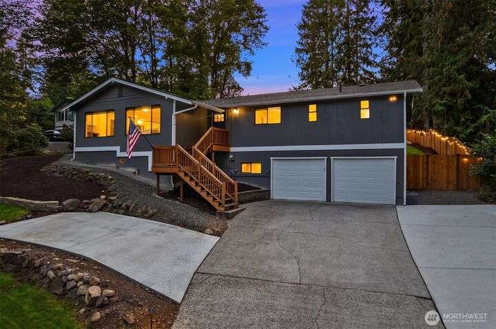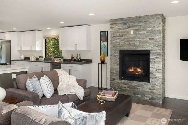 Experience modern design and open-concept living in this beautifully renovated home filled with natural light. The chef’s kitchen showcases quartz countertops, a gas range, and a statement island perfect for gathering. Two spacious living areas and a striking stone fireplace offer ideal spaces to relax or entertain. Enjoy brand-new carpet throughout and a versatile lower-level bedroom ideal as an office, gym, or guest suite. Step outside to a $100,000 professionally designed and fully fenced backyard oasis with custom landscaping and premium lighting. Stay comfortable all year round with a New high-efficiency heat pump and furnace. Minutes to Maple Hills Elementary, parks, pool, and clubhouse and in the top-rated Issaquah School District!