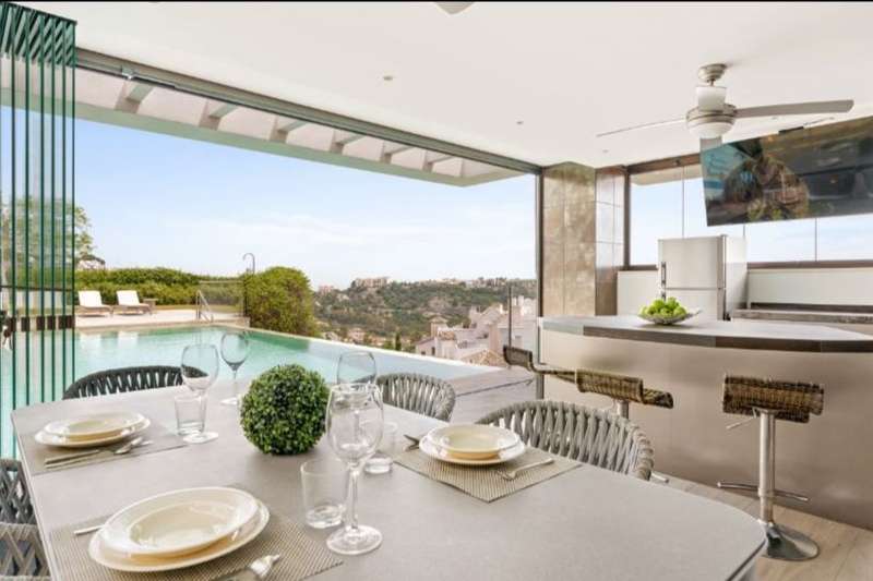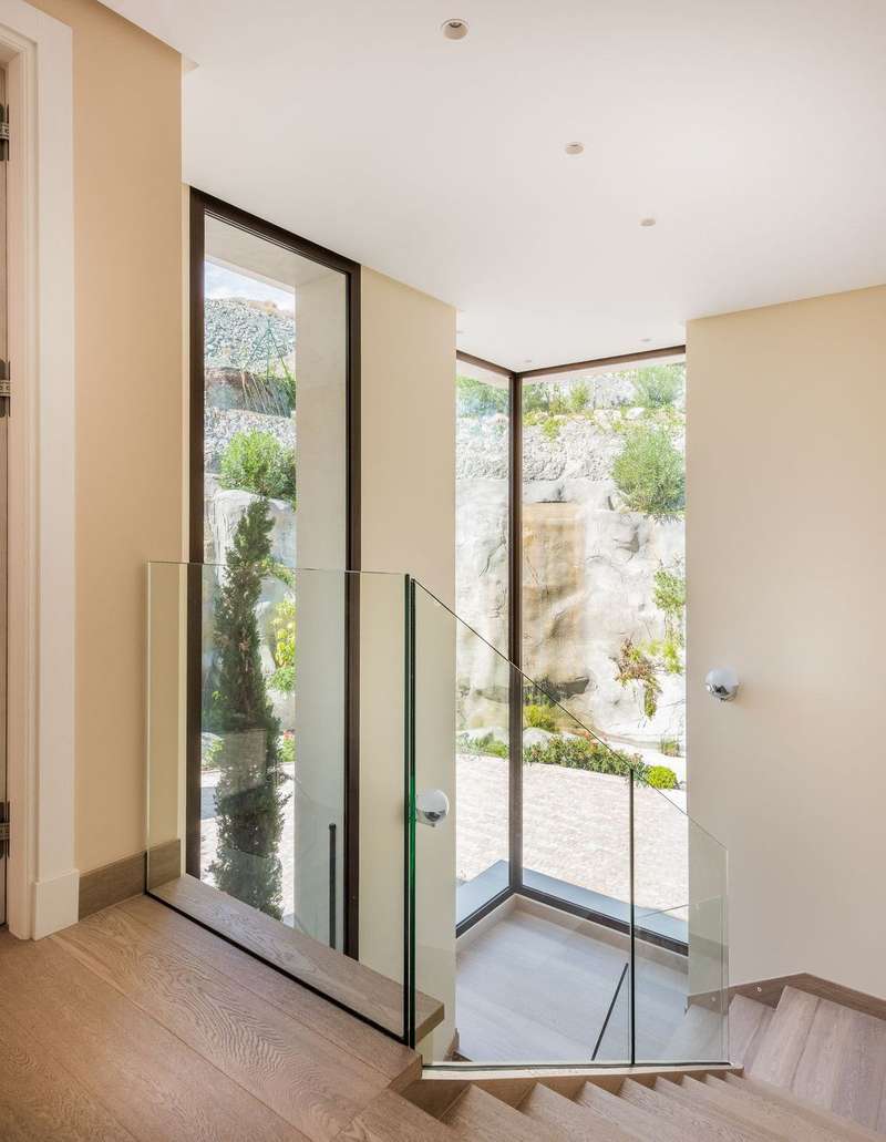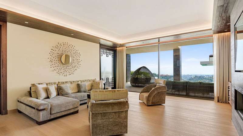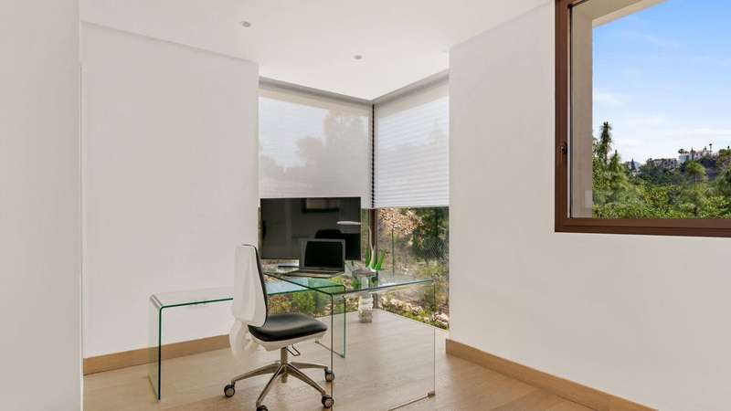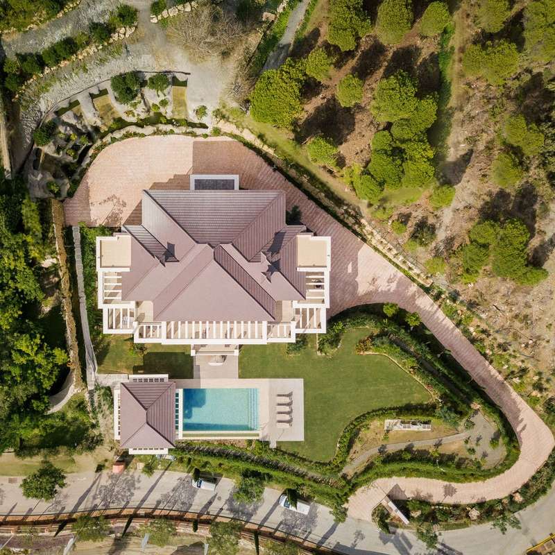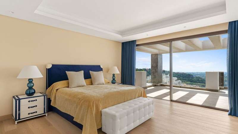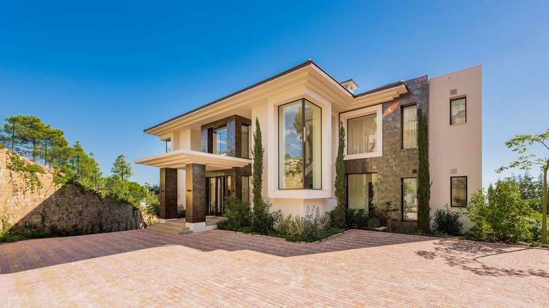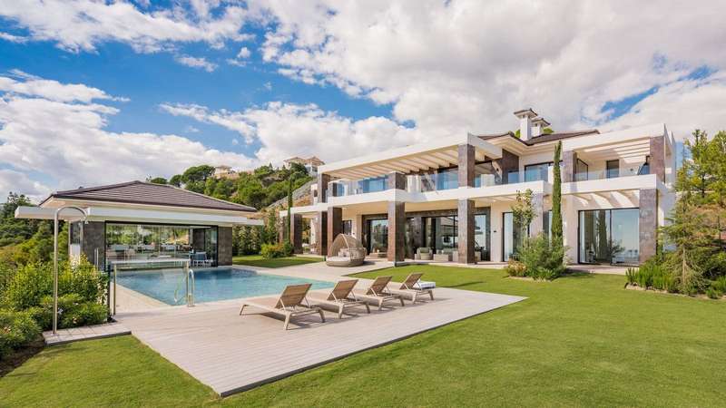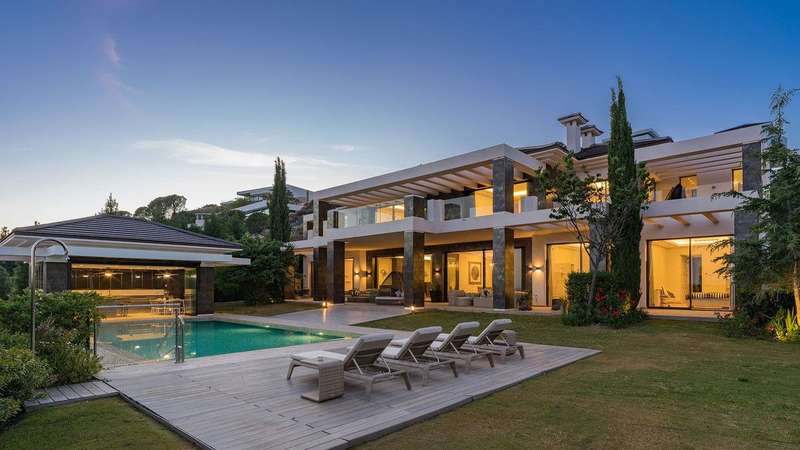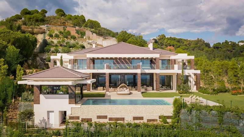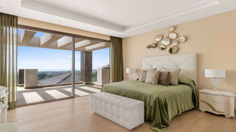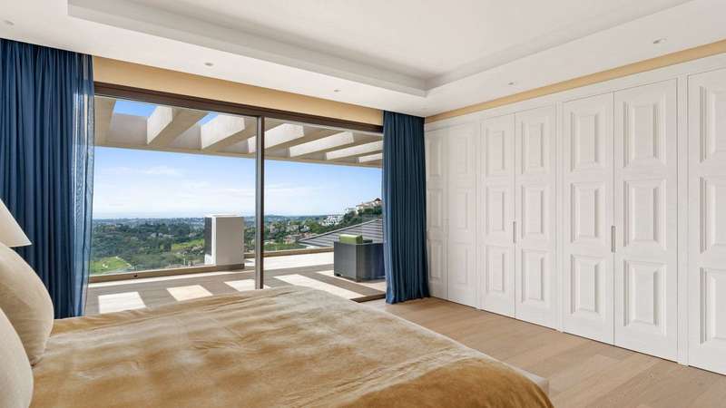 This stunning 9-bedroom villa in La Reserva del Alcuzcuz, Benahavís, is a true masterpiece of modern architecture, combining avant-garde design, eco-conscious luxury, and complete privacy. Set within an exclusive gated community, it offers breathtaking panoramic views of the Mediterranean, the surrounding hills, and even the African coastline. Spanning 1,158 m² on a 3,560 m² plot, the villa features spacious, light-filled open-plan interiors, a modern gourmet kitchen, and 298 m² of outdoor terraces perfect for entertaining. Each of the nine luxurious bedrooms comes with its own en-suite bathroom, ensuring ultimate comfort and privacy. The residence offers a resort-style atmosphere: a heated saltwater pool, a glass pavilion with an outdoor kitchen, a wine cellar, a games room, and a fitness area. The private garage accommodates four cars, ideal for collectors. Advanced smart home technology, underfloor heating, air conditioning, and a lift add convenience and modern elegance. Just mi