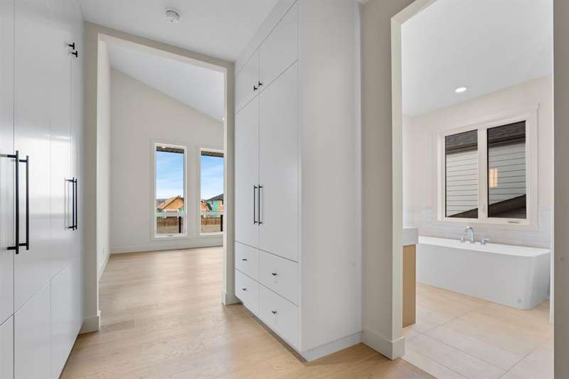 OPEN HOUSE – NOVEMBER 29th 1-4 PM Welcome to The Bella by Homes by Fifty-Six, a stunning new luxury build in the vibrant community of Upper Greenwich. Set on a spacious 44-foot lot with a sunny south-facing backyard, this home offers 3,292 sq. ft. of beautifully crafted living space and exquisite attention to detail. Step inside to a grand open-to-above foyer that sets the tone for what’s to come. The main level includes a private home office, den, mudroom, and powder room. The living room impresses with soaring ceilings and a gorgeous two-storey fireplace, flowing into a dining area and a chef’s kitchen featuring a massive island, premium finishes, and direct access to the south-facing deck — perfect for entertaining. Upstairs, the primary suite is a retreat with a covered dura deck, spa-inspired ensuite, and walk-in closet. Two additional bedrooms share a full bathroom, with a loft and large laundry room completing the upper floor. Built by Homes by Fifty-Six, a builder known for timeless design, enduring quality, and genuine craftsmanship, The Bella embodies what modern luxury should feel like. Enjoy all that Greenwich has to offer — parks, pathways, playgrounds, sport courts, a community garden, and the Calgary Farmers’ Market just steps away. With quick access to 16th Ave, Stoney Trail, and the Bow River Pathway, you’re only minutes to downtown and less than an hour to Kananaskis or Canmore.