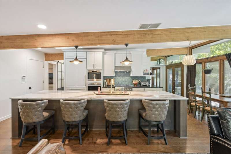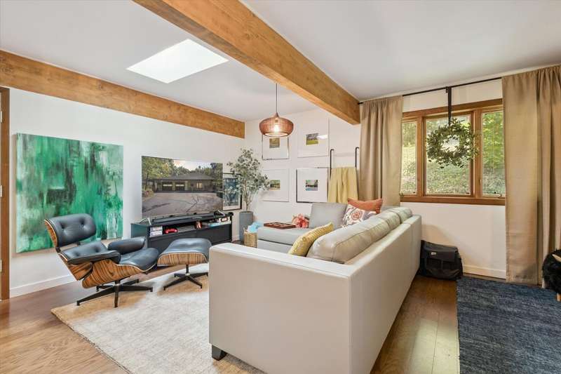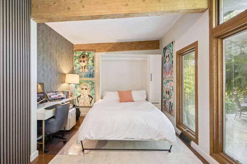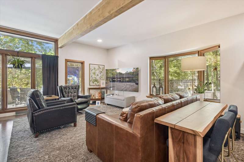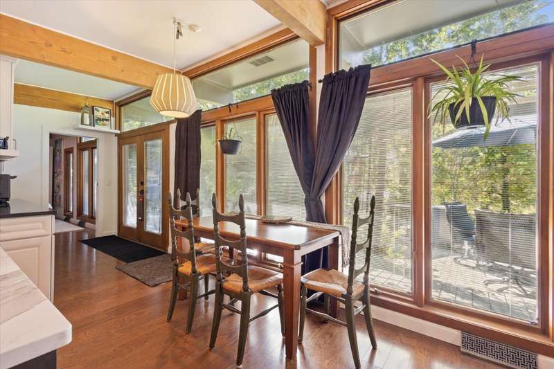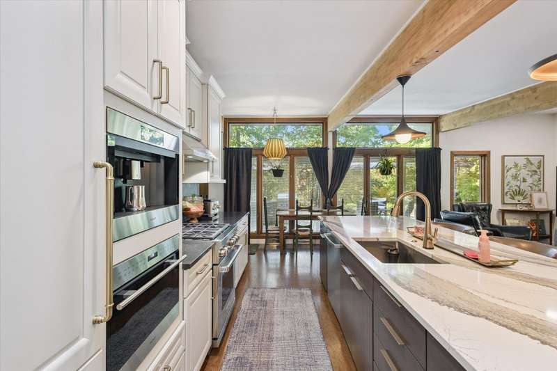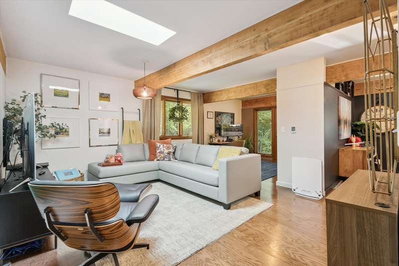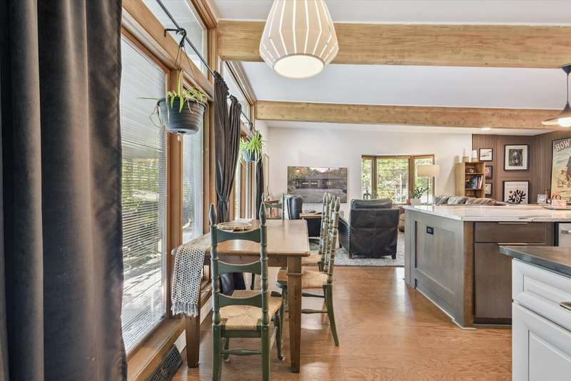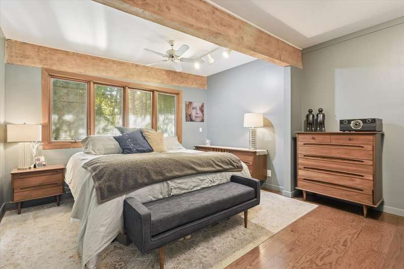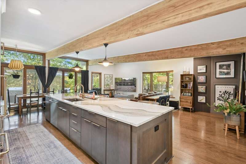 This updated 1957 Mid-Century Ranch has been well-maintained with close attention to details. The home features heated floors under engineered natural wood planks throughout, brand-new kitchen with built-in Subzero refrigerator and freezer, commercial grade Wolf range, quartz countertops, and marble backsplash. Brand-new laundry area with new washer and dryer. The exterior was completely repainted in 2024. Three beds, two full baths, large living room and family room. Major upgrades include on-demand tankless water heater, newer roof and skylights, blown-in insulation and double insulated Pella windows, whole house generator. Floor to ceiling windows overlook the John Bonnell Park with water access. Located on a beautifully landscaped over-sized corner lot with gardens, patio, deck, arbors, firepit and fishpond. Privately nestled in woods. Enclosed two car garage with significant storage space located in the attic above. Access to Woodcliff Park Assoc. on Reeds Lak The home faces the Reeds Lake Channel and has unobstructed views of the Lake.