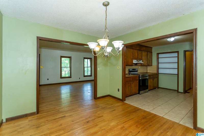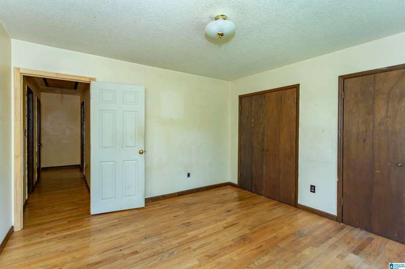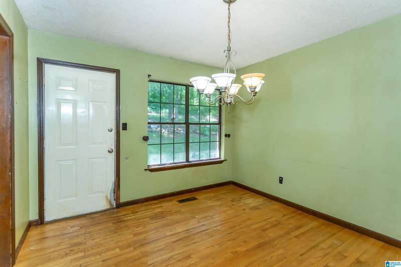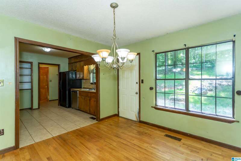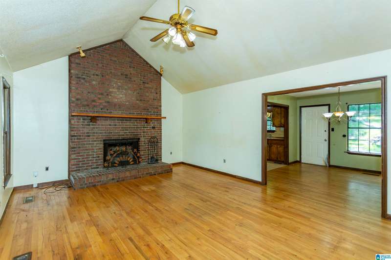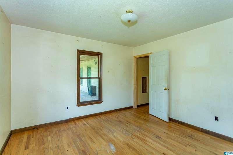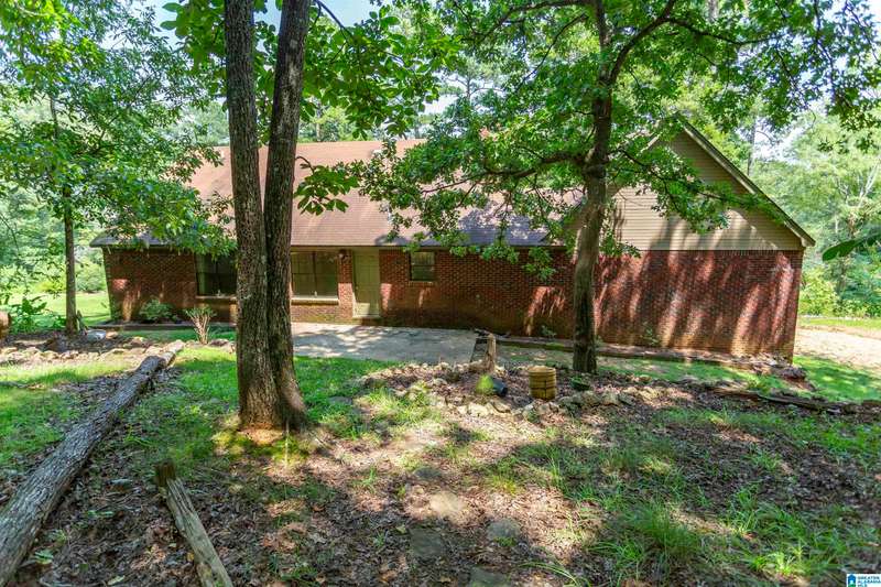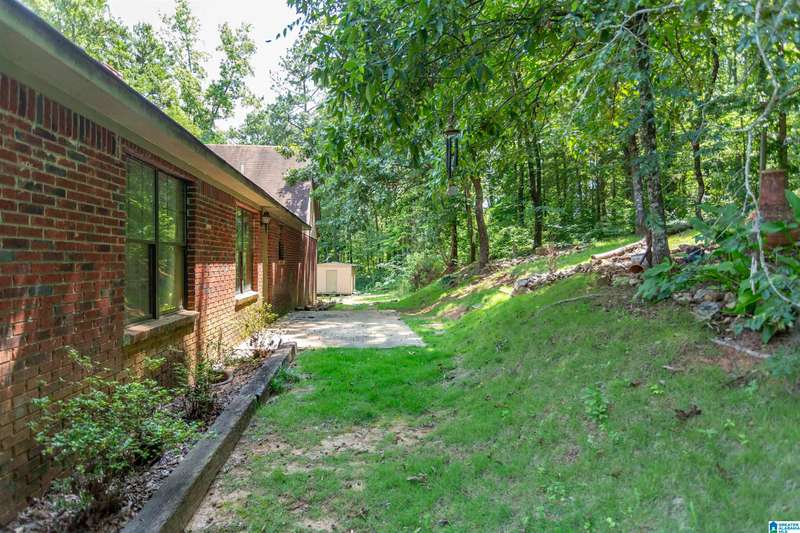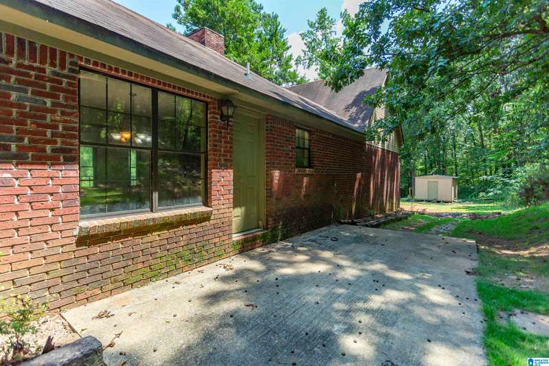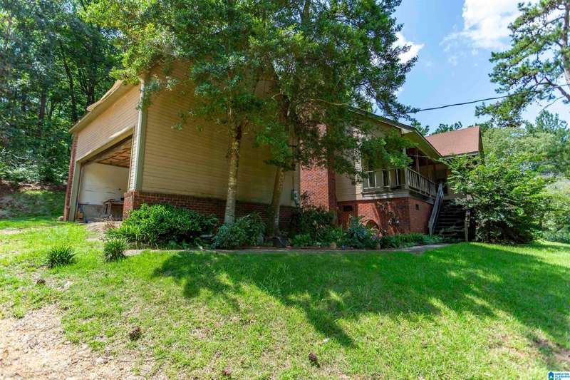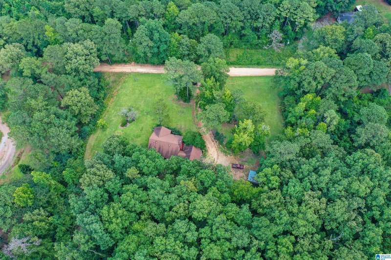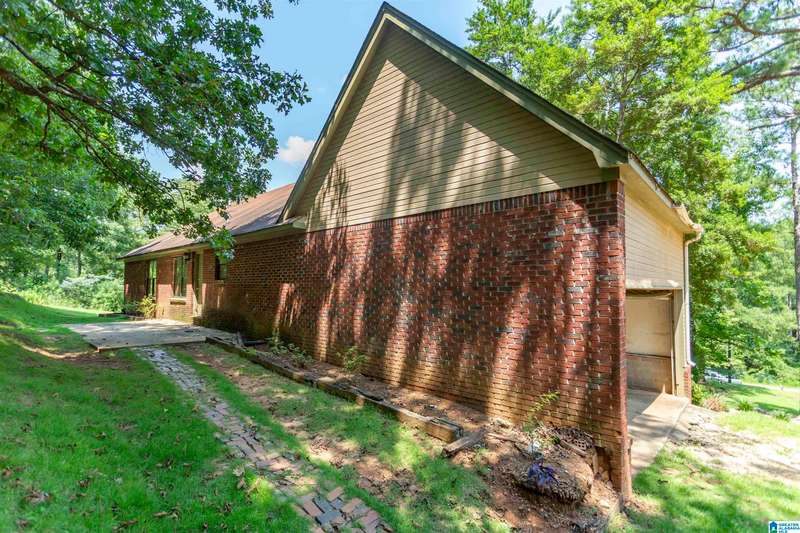 Hidden Gem on 5 Acres!!! This one-level home offers tons of potential, nestled in a beautiful and private setting. With three sides brick and wood siding, it features 3 bedrooms and 2 full baths. Hardwood floors run through the Great Room, Dining Room, hallway, and one bedroom; carpet in the other two bedrooms will need replacing. The kitchen has tile floors and an adjacent laundry room. A two-car garage offers ample parking, and a storage building remains. A double-wide trailer sits in the woods behind the home'seller states it is not livable. Flower beds frame the front and continue around the back patio.