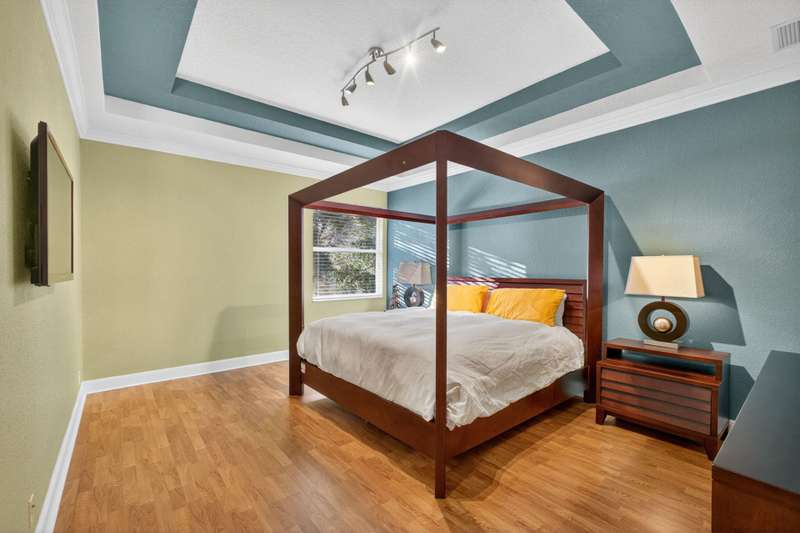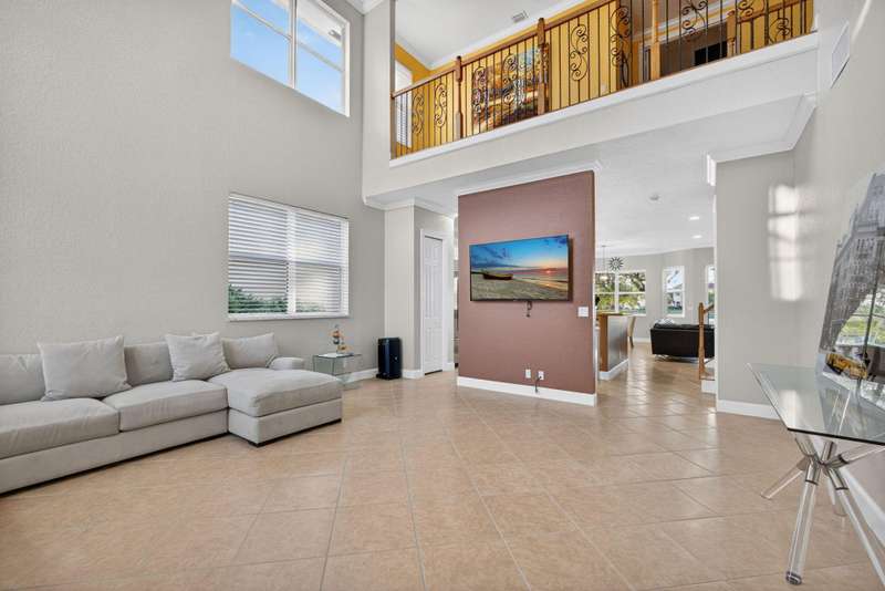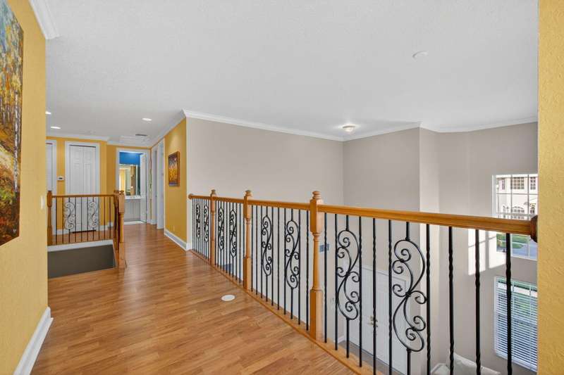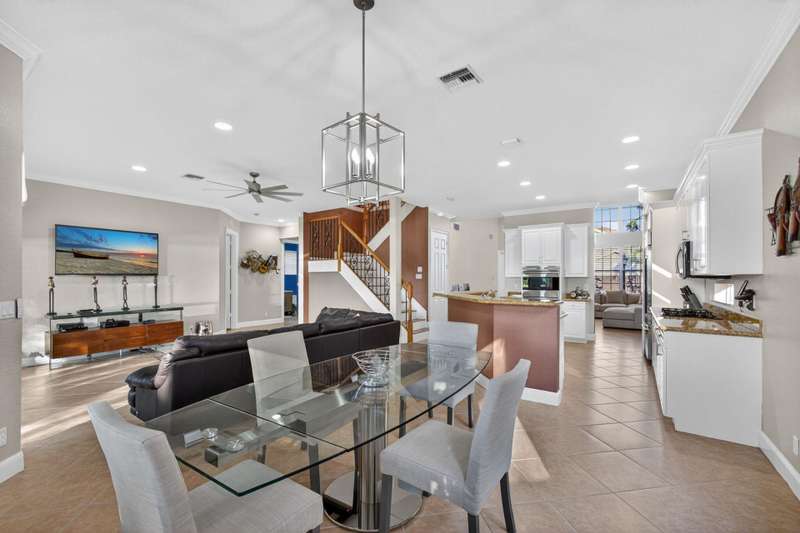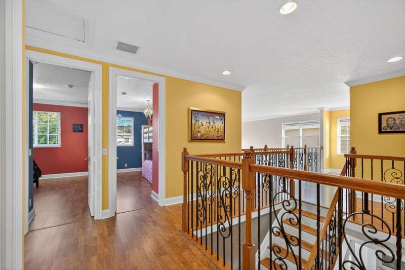 Discover Tranquility & Comfort in this Beautifully Designed 5 Bedroom, 3 Bath Home w/2 Car Garage, Ideally Situated on a Quiet Cul-de-Sac Overlooking the Largest Lake in the Community. The Thoughtfully Designed Floor Plan Features a Convenient 1st Floor Bedroom & Full Bath Perfect for Guests Step Inside to Find an Open & Versatile Floor Plan, Featuring a Spacious Upgraded Kitchen w/Custom Cabinetry, Granite Countertops, & Gas Cooktop Perfect for the Home Chef. The Adjoining Living & Dining Areas are Highlighted by Diagonal Tile Flooring & Stunning Wrought Iron Staircase that adds Timeless Sophistication. Upstairs, the Spacious Primary Suite has 2 Large Walk-in Closets & Spa-Inspired Bathroom with Granite Finishes, Soaking Tub w/Walk In Shower & 3 additional bedrooms share this Level....