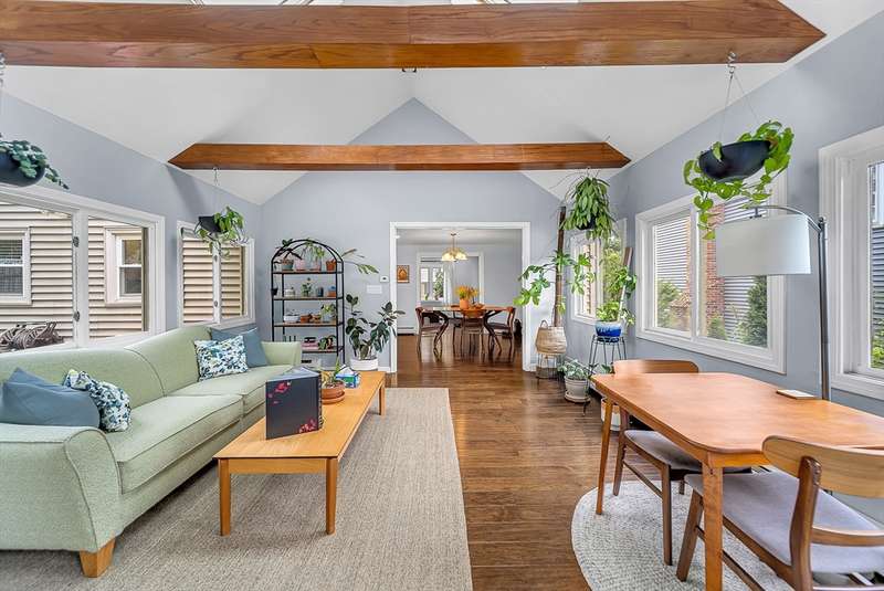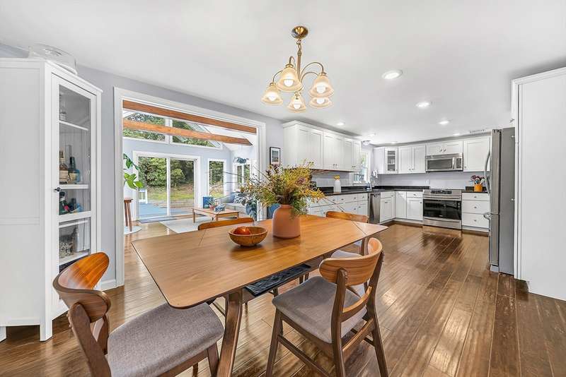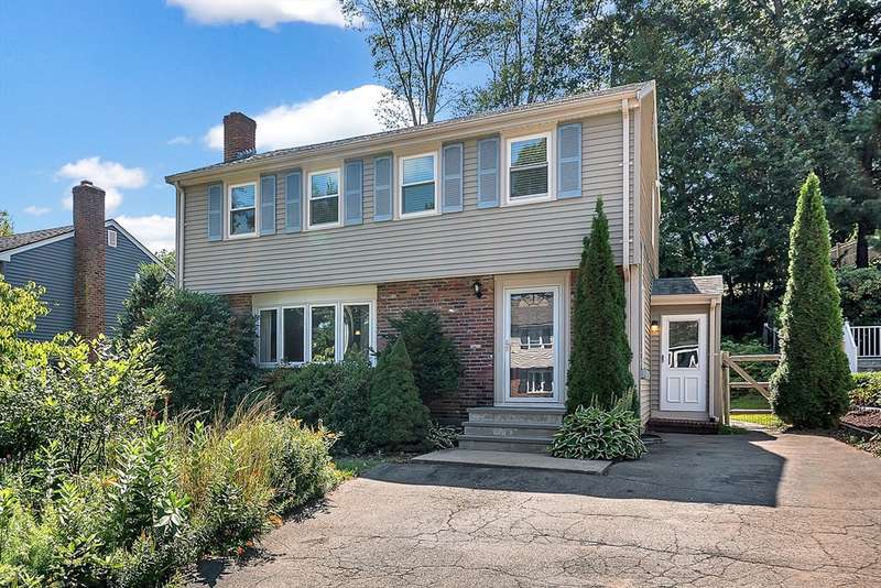 Sunny and inviting, this 4-bed, 1.5-bath colonial is nestled in the sought-after Greenlodge neighborhood. Inside, enjoy gleaming hardwood floors, fresh updates, and a great layout for entertaining. The living room features a bay window and fireplace, leading to a stylish eat-in kitchen with granite counters and stainless steel appliances. A bright sunroom with a cathedral ceiling opens to the deck and patio perfect for indoor-outdoor gatherings. A mudroom and half bath complete the first floor. Upstairs offers four spacious bedrooms with generous closets and a full bath. The finished basement adds flexible space for a playroom, office, gym, or family room. There is also a thriving pollinator garden right at the entrance, newly upgraded 200-amp electric panel and and a Level 2 EV charger. Located close to schools, major routes, the train, and great spots like Dedham Square and Legacy Place, this home blends convenience with classic New England charm.