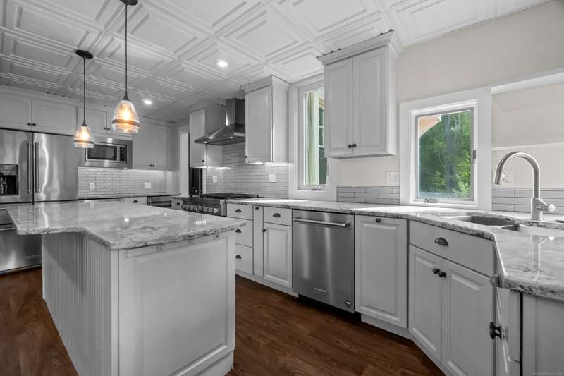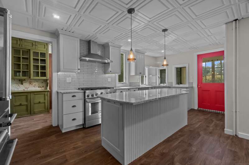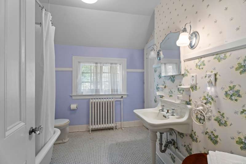 If you have dreamed of living in a French or Tuscan villa, this turn of the century New London home is offering an opportunity to be its new steward. Privately situated with an on site guest home (originally gardeners cottage), this gracious terra cotta built colonial enjoys 2 acres boasting English gardens, specimen trees - Chinese dogwood, holly, cherry/maple trees, Japanese snowball and weeping beach trees to name a few. Multigenerational appeal within as the home offers great versatility. Discriminating buyers will appreciate the current owners attention to detail as well as mechanical upgrades. Custom crafted Scribner KT, 4 operational fireplaces, front/rear stairways, pocket and French doors, 9' ceilings, hardwood floors, central AC. Rear guest home is rented mo to mo and has been updated within. Independent utilities with exception to water, one meter services both homes. Au pair, work/home office, in-law space, supplemental rent- all present, the perfect pairing for the private