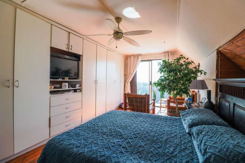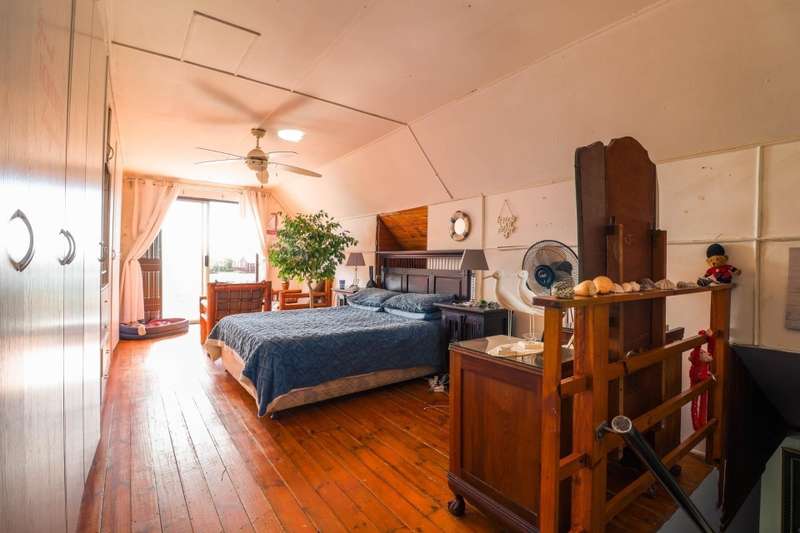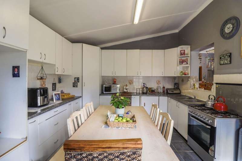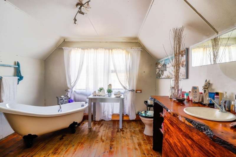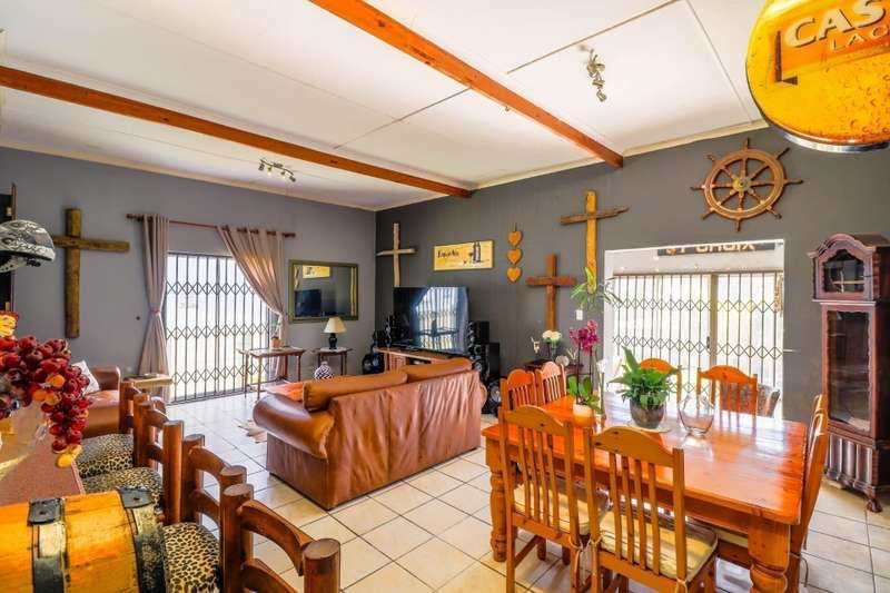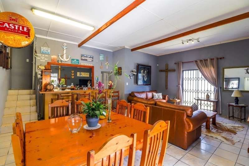 Exclusive joint mandate: This property does have a magnificent sea view from the main bedroom. As you enter you have a semi open plan kitchen area. From there you have a sunny sitting room with windows overlooking the back garden. With a small step you enter the large open plan living and dining room. With your bar for the entertainment evenings or weekends. You have three bedrooms downstairs. All can easily fit double beds. One bathroom to share for two bedrooms. Bath, toilet and basin. Third bedroom have a en suite bathroom with shower, toilet and basin. Separate and spacious laundry area. Going up the stairs you have your large main bedroom with BIC and en suite bathroom. Consist of beautiful Victorian bath, toilet and basin. Bathroom have a mountain view. With doors leading out to the deck with permanent sea view. Ideal for holiday or permanent living. The property is fully enclosed and access to garage.