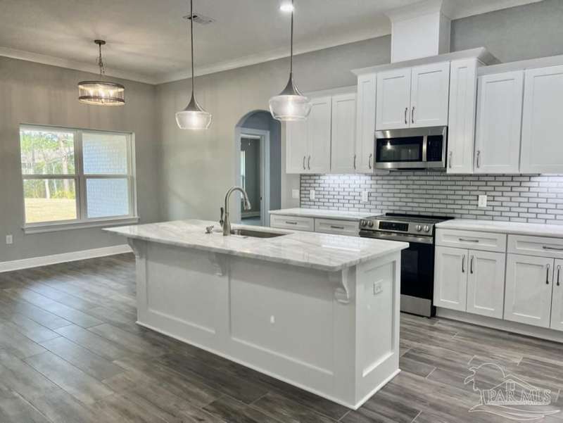 NEW CRAFTSMAN Custom Built Home in Holley By The Sea,Enjoying all the Club House amenities including :Pools,Fully Equipped Gym,Tennis Courts,Waterfront Park & Deeded Access to Santa Rosa Sound This luxurious 4 bed/3 bath Tri split floor plan is under construction...and will be ready Late Oct 25 ~Great Location within HBTS..with easy access to Navarre Beach, shopping and Hwy 98 to Hurlburt Field AFB.This Stunning Robbins Builders Custom Home offers trend setting design & features~Greeted by a walk in foyer open to the Formal Dining and Office through to your open floor plan ~Large Gourmet kitchen enjoying shaker cabinets with crown molding ~ beautiful quartz counter tops~Tiled Back splash~Under Mount Sink~S/S Appliances~Large wrap around walk in pantry ~Center Island with open flow to the breakfast nook and family room, Wood Plank staggered tile through the foyer,dining room, main living area, laundry and bathrooms. Large Master with trey ceiling & ceiling fan. Master bath offers a large tiled walk in shower /separate soaking tub' quartz double vanity with picture frame mirrors & Huge walk in closet.Two additional bedrooms are a great size with double closets~ ceiling fans and share a bathroom with a step in tub/shower ,linen closet and WC.Third additional bedroom is separate from the other rooms and would make a perfect guest/teen suite with its own bathroom and access out to the large covered porch.Laundry room & over sized 3 car garage ...ideal for the larger trucks and still plenty of room for all the outdoor toys. Home is situated on a large lot with grassed yard ~sprinkler system~ lawn pump and well with digital programmable timer for easy care. TAEXX in wall pest control system~ Fabric Shield Hurricane protection and dimensional shingle roof for lower insurance premium. Upgrades include crown molding, recessed lighting ,framed mirrors, deluxe lighting package,50 Gallon water heater, garage door remotes, attic drop down stairs~ to name a few......Call today