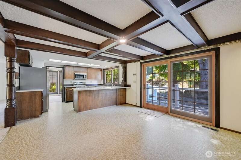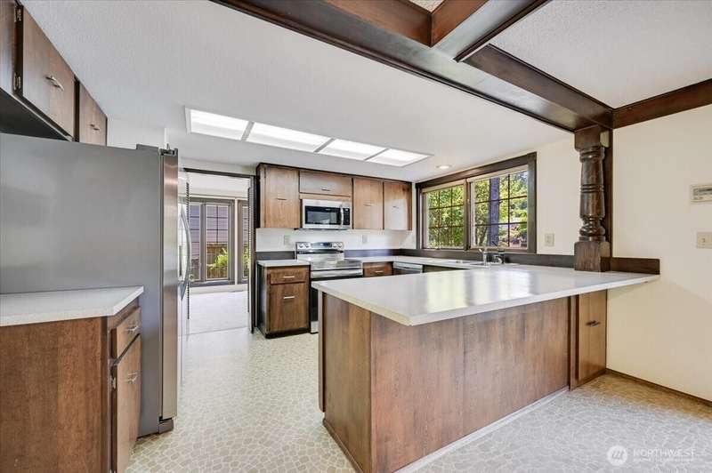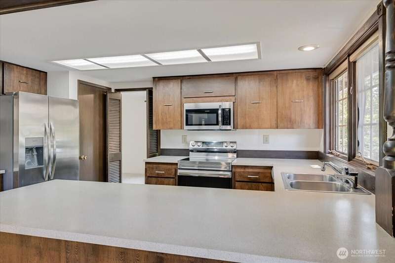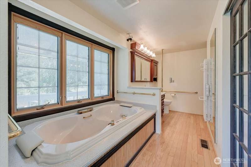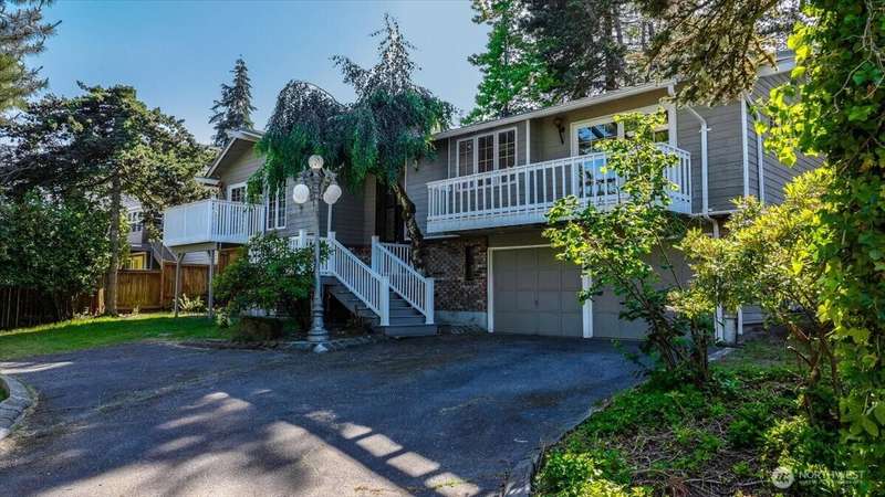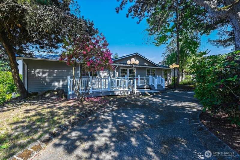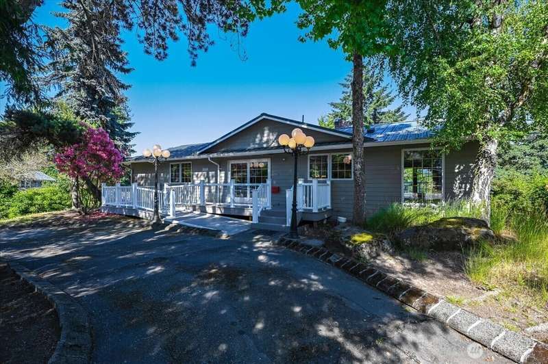 HUGE PRICE IMPROVEMENT- EXCELLENT VALUE AND LOCATION! This is NOT your ordinary split, featuring one-level wheelchair-accessible living on the main floor via an access ramp at the rear of the home. The beautiful mountain and territorial views can be improved by trimming a few trees! Accessible main bath, living room, dining and primary suite with a 5-piece remodeled bath & balcony + 2 more bedrooms. Downstairs could also be accessible via the rec room. Downstairs has a huge 4th bedroom with walk-in closet, rec room with surround sound + fireplace & French doors to the patio, and laundry room with 3/4 bath. Huge 2-car garage with workshop area. Potential for AFH, ADU, OR multigenerational living. Heat pump/AC, metal roof, new deck. HURRY!