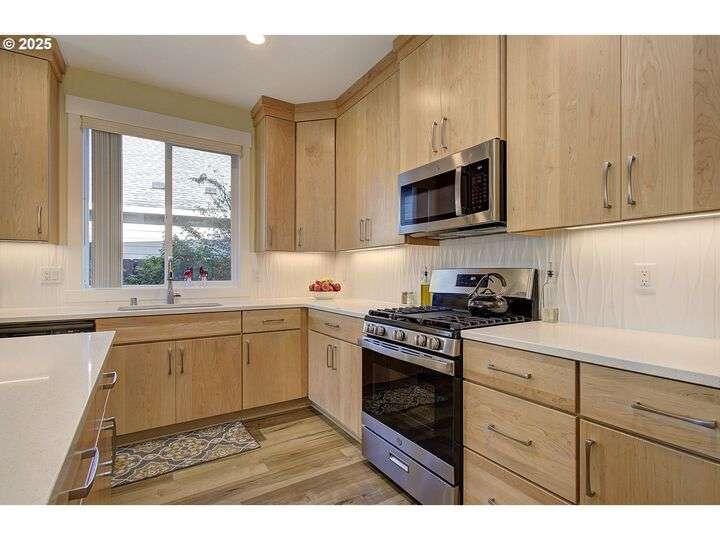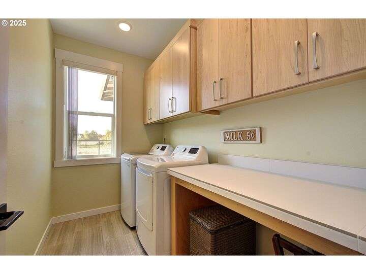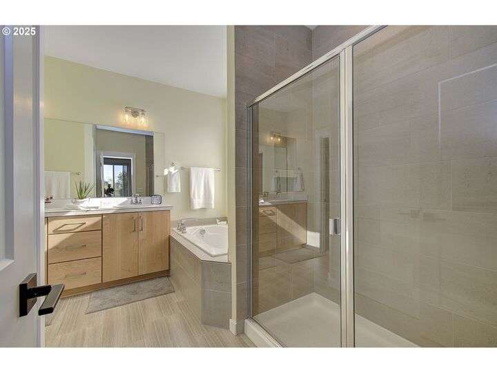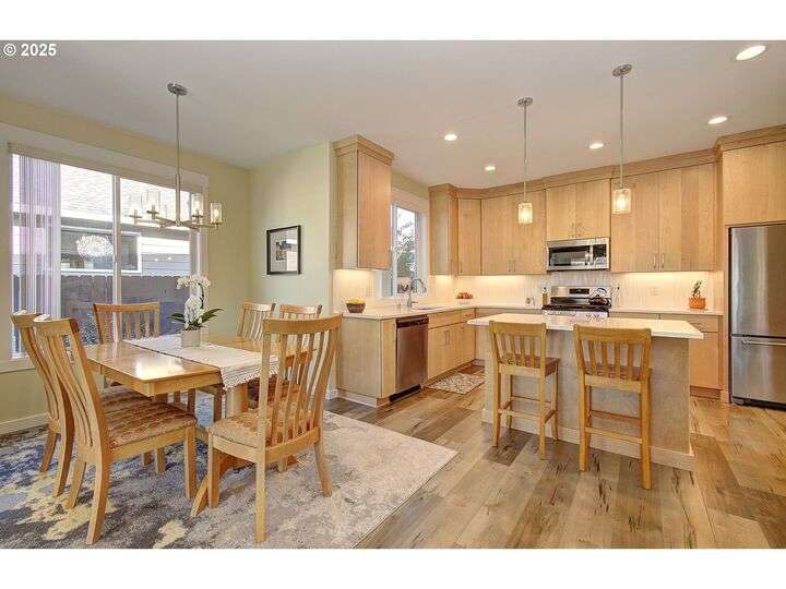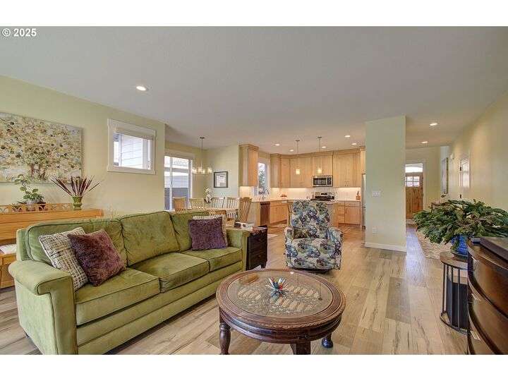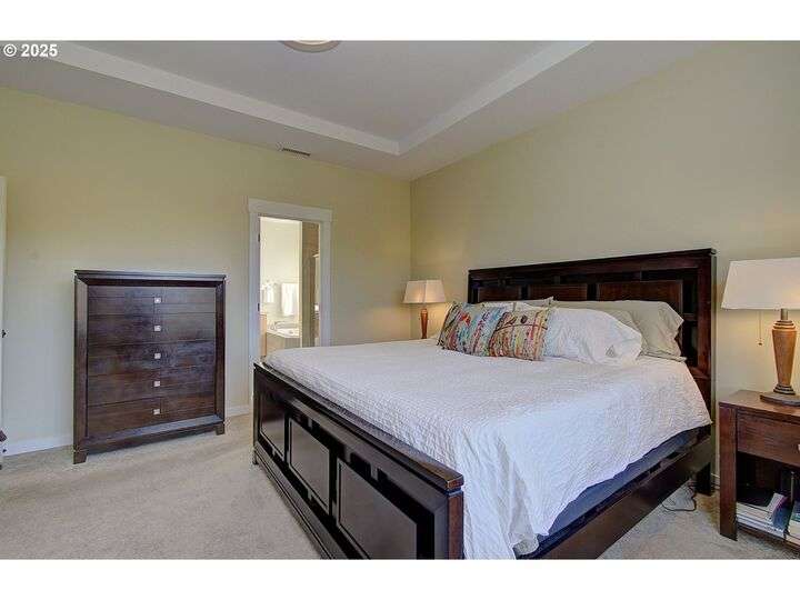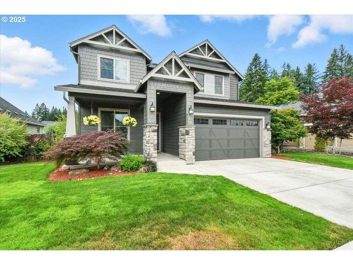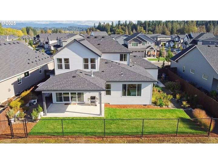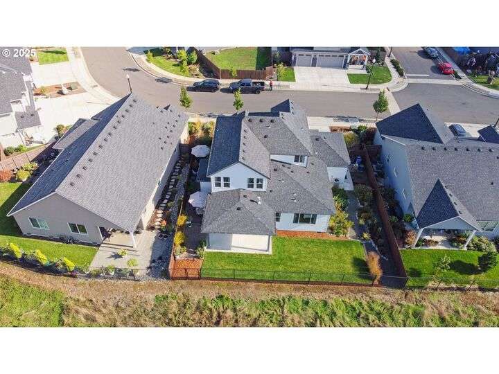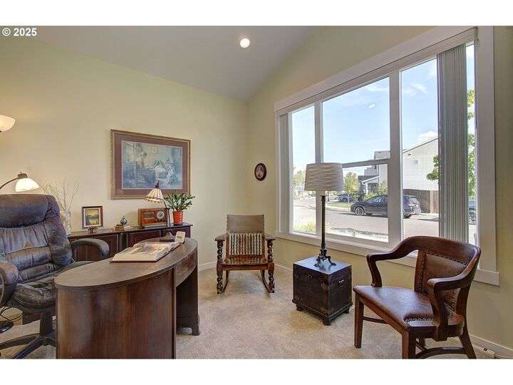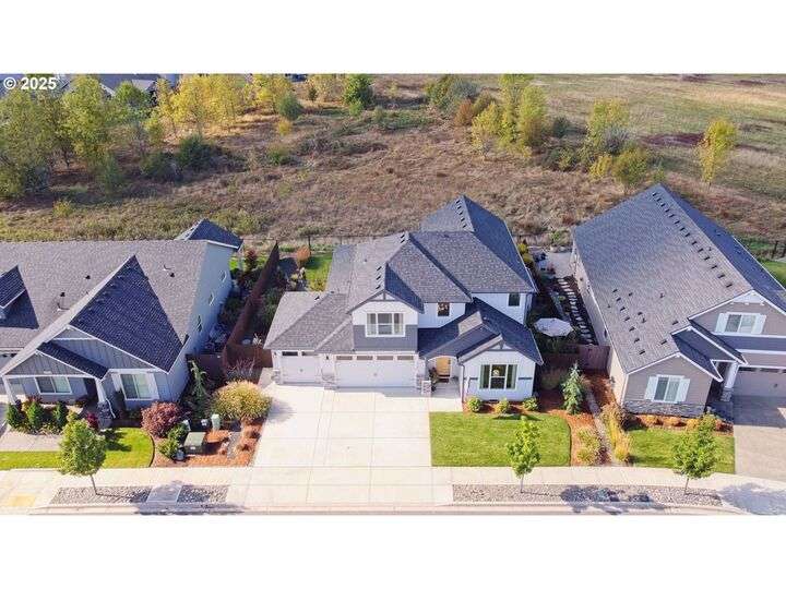 This beautifully maintained home sits on a premium lot backing to open green space, offering privacy, peaceful views, and a serene natural backdrop. Located in the desirable Cedars Landing neighborhood, you'll enjoy access to scenic trails just a short distance away, plus a private community playground nearby.The main level features a spacious primary suite with coffered ceiling and a spa-like en suite bath, including a soaking tub, tiled walk-in shower, dual sinks with tile counters, tile floors, and a large walk-in closet. A vaulted office with a single French door offers a quiet, light-filled space for working from home.The open-concept kitchen includes Energy Star stainless steel appliances, a pantry, and a generous dining bump-out that creates a bright and inviting eating area. The great room boasts 9-foot ceilings and a large double slider that brings in natural light and showcases picturesque greenbelt views.Stylish architectural details include an elegant vaulted entryway that reaches to the second story and a custom wrought iron stair railing that add a sense of openness and character from the moment you walk in.Upstairs, you'll find three generously sized bedrooms, a full bathroom with double sinks, and a vaulted bonus room—perfect for a playroom, home gym, media space, or guest retreat. There’s plenty of room to spread out and live comfortably. Step outside to enjoy a professionally landscaped backyard with an expansive covered patio, paver walkway, and a peaceful “secret garden” area. The low-maintenance front yard includes a full sprinkler and drip system for year-round ease. This is a rare opportunity to own a thoughtfully designed home with beautiful natural surroundings, flexible living space, and community charm—all in one!