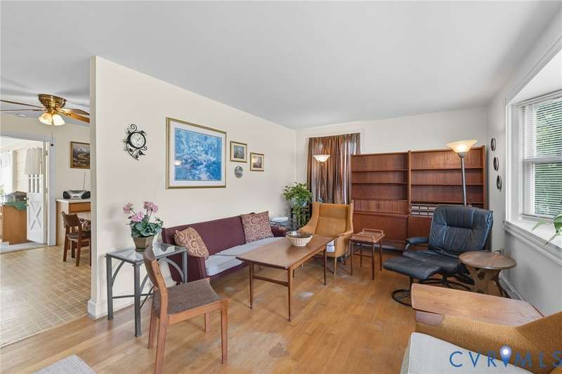 Charming 3-bedroom, 1-bath home offers 1,240 sq. ft. of comfortable living with beautiful hardwood floors throughout. A spacious family room welcomes you with plenty of room to gather, while the kitchen provides abundant cabinet and counter space. Just off the kitchen, the bright step-down laundry/mud room offers built-in cabinetry for additional storage space. Sunroom is lined with an abundance of windows, flooding the space with natural light. All three bedrooms feature hardwood floors and share a full hall bath with vanity and tub/shower combo. Outside, enjoy a sprawling fenced backyard, perfect for entertaining, play, or pets. With its nice curb appeal, functional layout, and generous outdoor space, this home is full of charm and potential! (new roof in 2021)