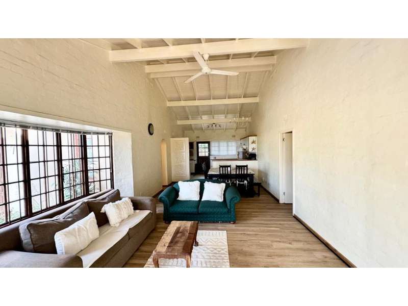 MOVE IN READY 3 BEDROOM TOWNHOUSE Secure and spacious townhouse in a small complex with a private garden. This home boasts 3 bedrooms 2 bathrooms, open-plan kitchen with ample cupboards, electric oven and gas hob with extractor fan and laminating flooring. The living area is spacious with high ceilings and flows out to an enclosed sunroom. Off the living area is a small home office with built in cupboards. The main room has a full bathroom and has a door that leads out to the lush private garden. The 2nd and 3rd bedroom share a bathroom. Double automated garage, alarm system, Fibre and back up water. To view this gem call or WhatsApp me today!