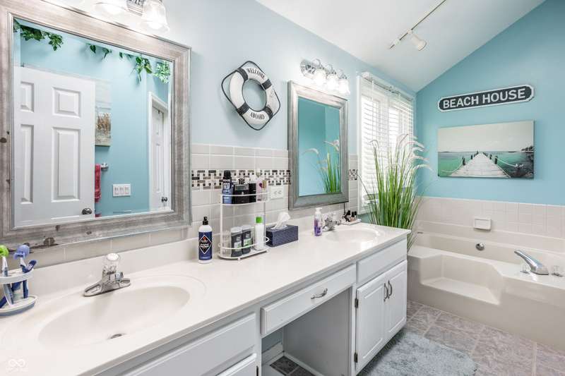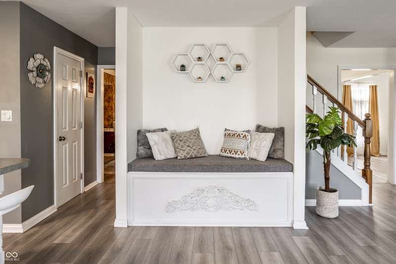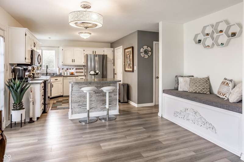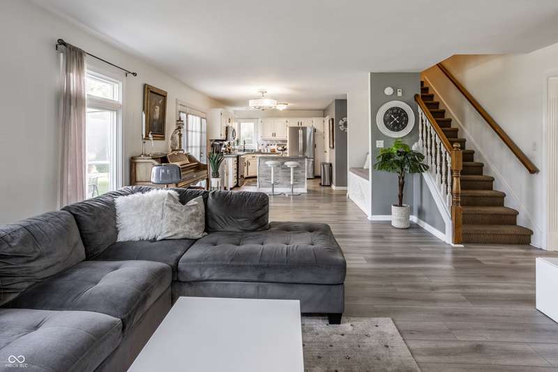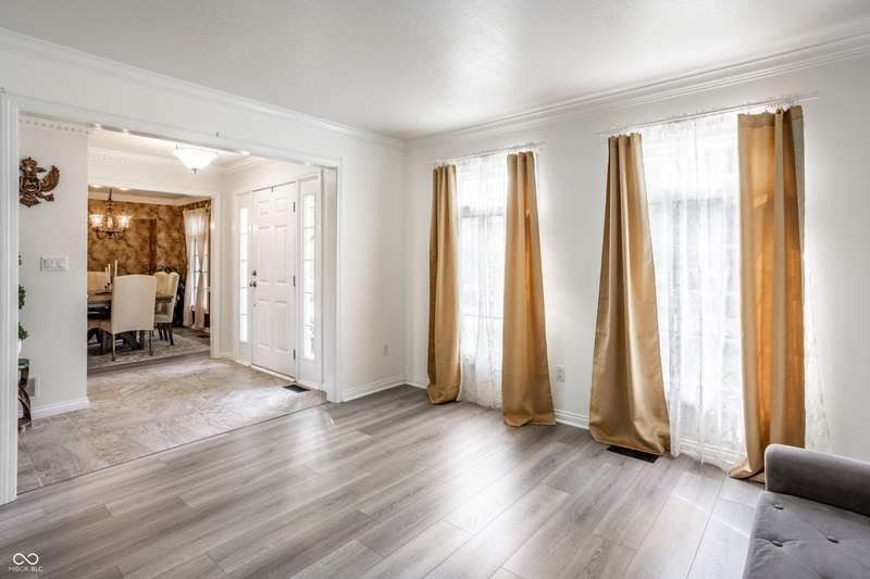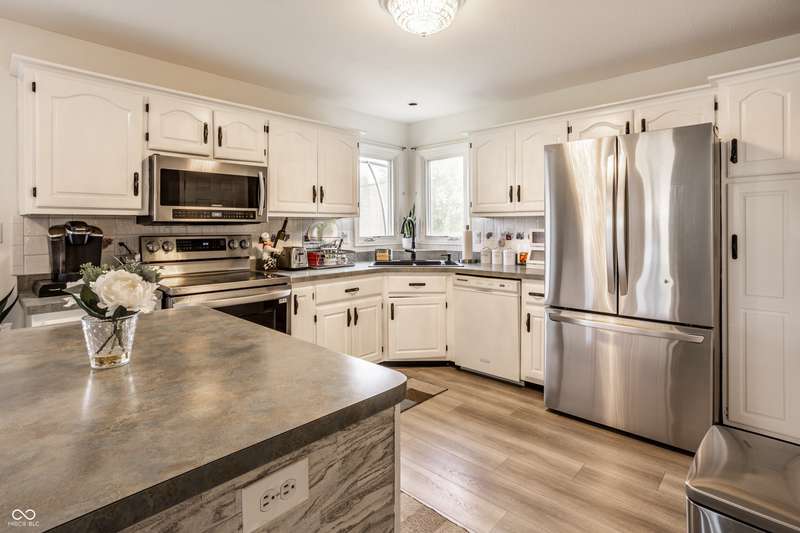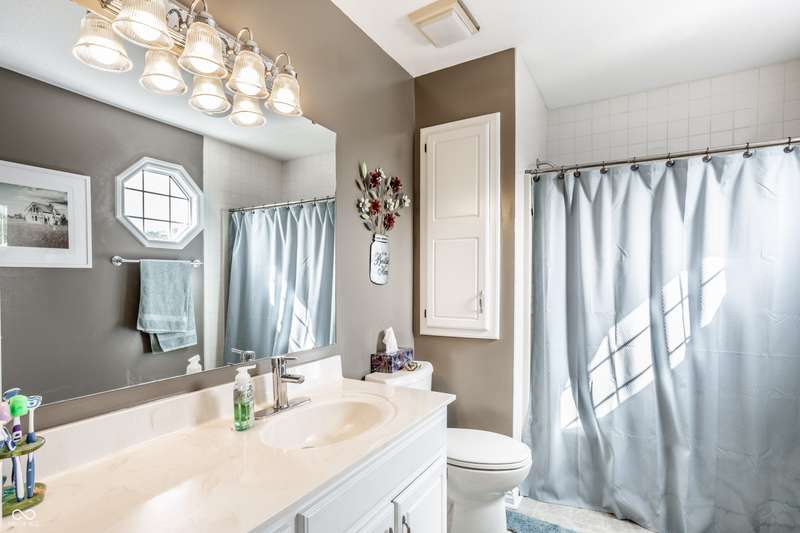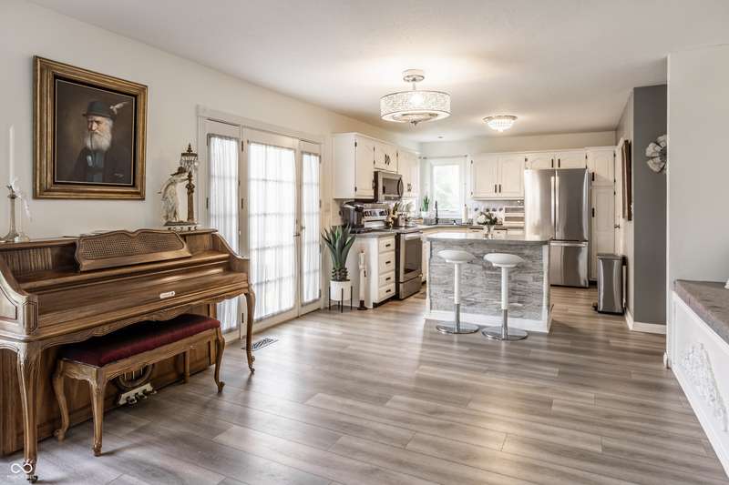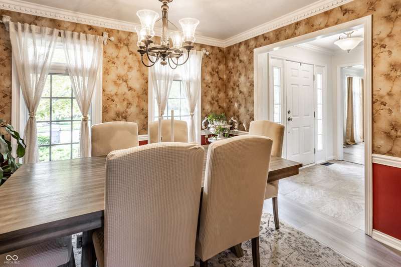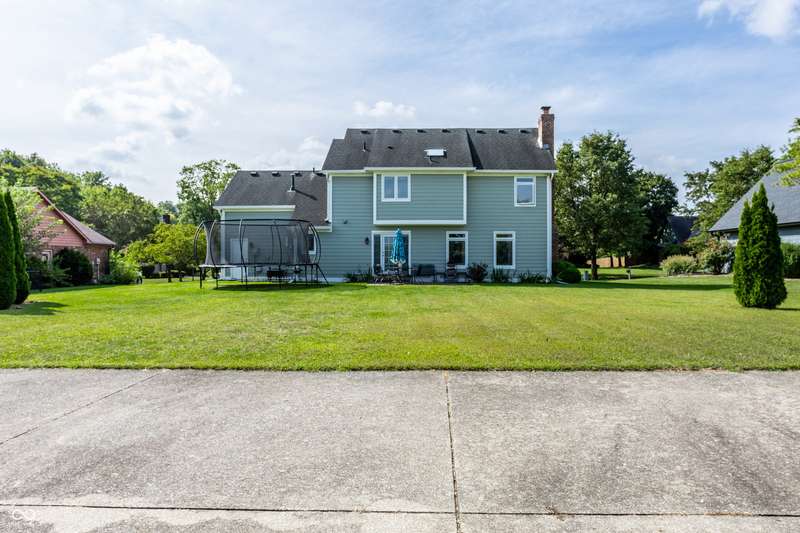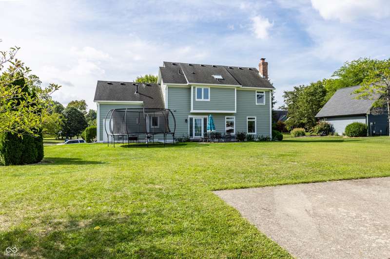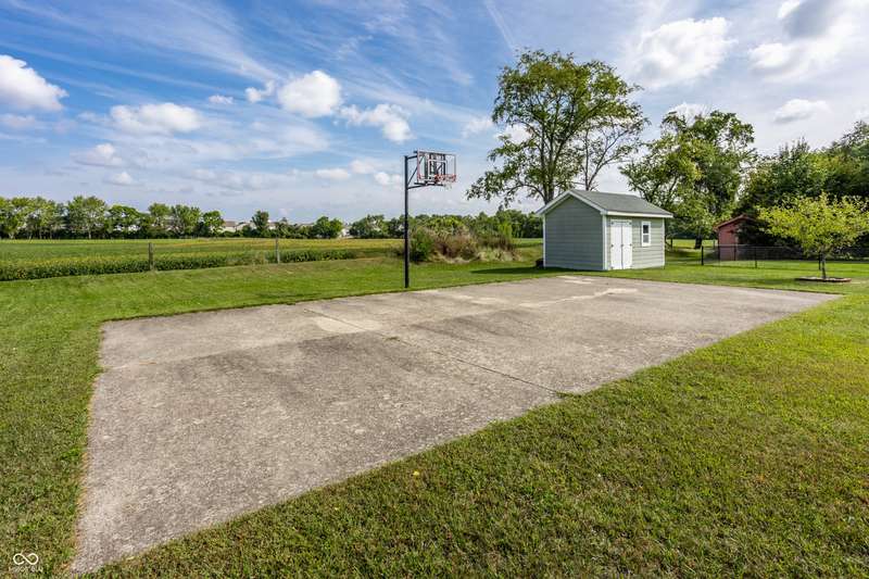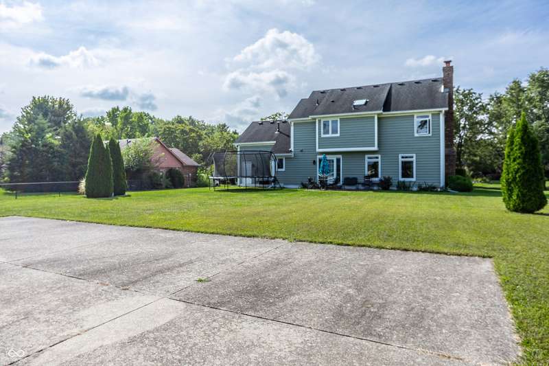 Nestled in Forest Creek, this custom-built 4BR/2.5BA home blends charm and function. Enjoy the neighborhood trail to the creek, farm field views, and the backyard half-court basketball (Hoosiers!). Custom details shine in crown molding, wood trim, built-ins around the brick fireplace, tray ceilings, and abundant windows framing backyard farm field views. The primary retreat features vaulted ceilings in the bathroom with skylight, jacuzzi tub, double sinks, separate shower, and walk-in closet. Main level offers new flooring throughout. The kitchen with a center island, built in bench (storage below!), new oven/range & refrigerator. The finished & extra-deep 2-car garage will fit all your toys & tools! Enjoy the peaceful neighborhood, close proximity to New Palestine and 20 minute drive to downtown Indy!
