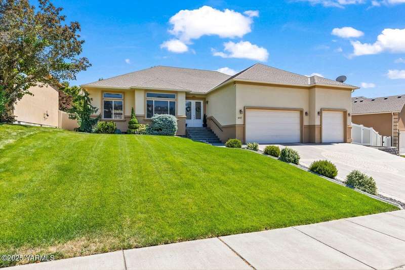 Beautifully maintained 4-bedroom, 2-bath home in West Valley with over 2,600 sq. ft! Inside, a formal sitting room and formal dining room offer versatile spaces for entertaining, hobbies, or a home office. The open kitchen boasts granite countertops, a large island, pantry, and gas range, and connects to a sunny dining nook and the great room with vaulted ceilings and a cozy gas fireplace.The private primary suite features patio access, a soaking tub, tiled walk-in shower, dual sinks, and a custom walk-in closet. Outdoors, a covered patio with built-in firepit and TV hookup creates a perfect year-round gathering spot, surrounded by beautiful landscaping. An oversized 3-car garage provides plenty of space for parking and storage. Move-in ready and filled with thoughtful upgrades!