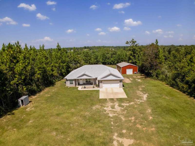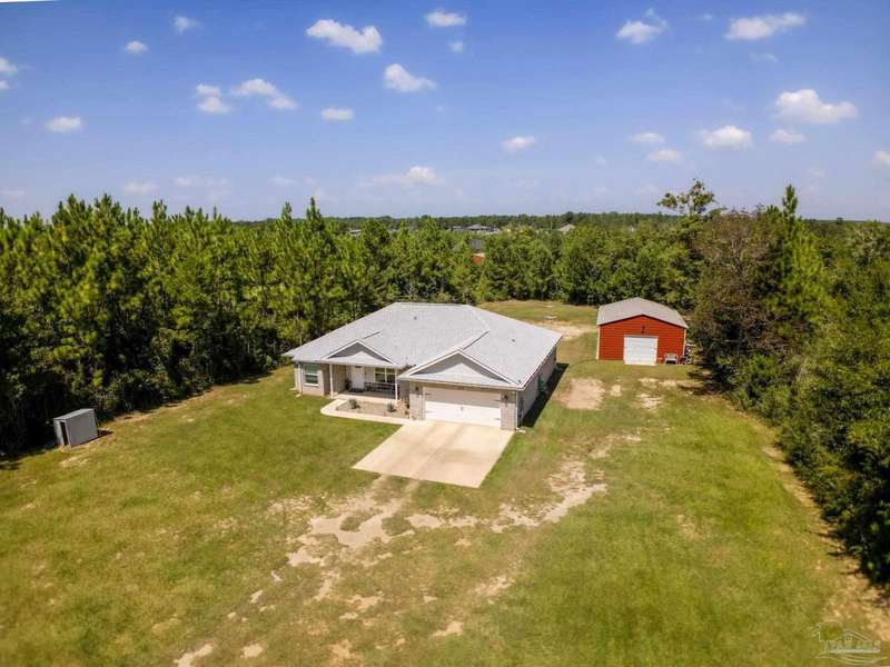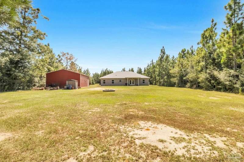 Welcome to this breathtaking brownstone brick custom-built home, completed in November 2024, located on a sprawling 2.66-acre lot in the highly sought-after Pace, Florida. With impeccable attention to detail, this home blends modern luxury with practicality, offering the perfect retreat for both relaxation and entertainment. The home comes equipped with a smart doggy door, ensuring convenience for your furry family members, while the entire home is designed with modern, easy-to-use technology that enhances daily living. The chef's kitchen features sleek granite countertops, perfect for meal prep, with ample storage and a layout that flows seamlessly into the rest of the home. The spacious master suite offers a private sanctuary, complete with oversized his and her walk-in closets. A spa-like master bath provides the ultimate place to unwind after a long day. The property includes a 24x36 metal building with electric, providing ample space for a workshop, storage, or additional vehicles. The possibilities are endless! Also included with this home is a 30 AMP Hookup as well as sewage for an RV! Situated just a short drive from Pensacola Beach, you'll have quick access to white sandy shores and the Gulf Coast's stunning waters. Plus, the natural beauty of Blackwater River is right at your doorstep, offering endless opportunities for outdoor recreation, from kayaking to hiking. Whether you're looking for a peaceful retreat or a place that's close to everything, this home provides the best of both worlds. Schedule your tour today and see for yourself why this is the ideal place to call home! Seller will provide a 1 year Home Warranty and will contribute to closing costs. Ask an agent for details.