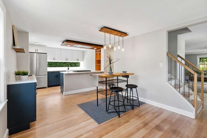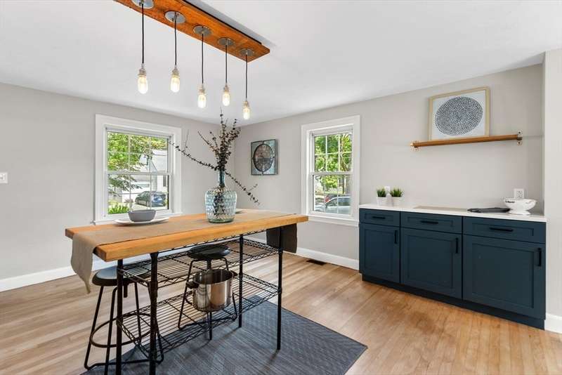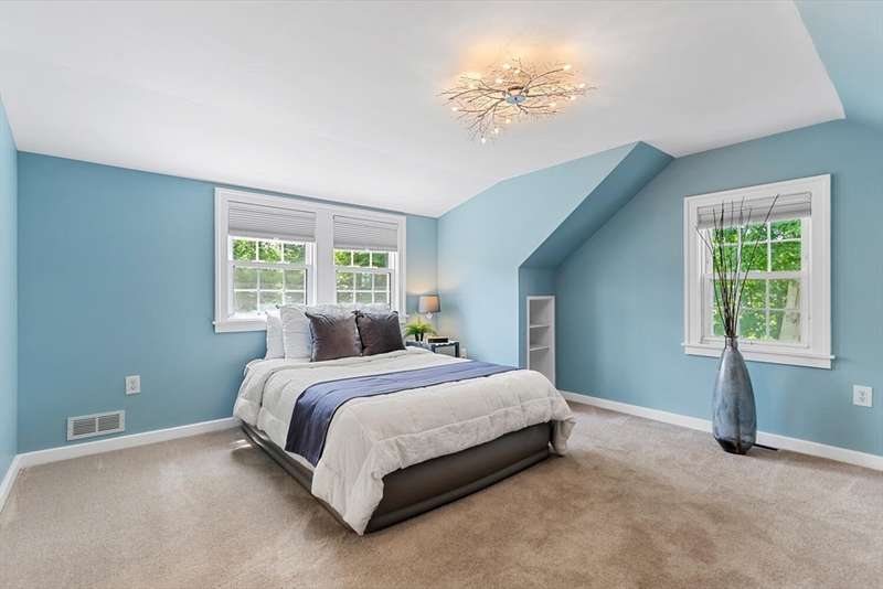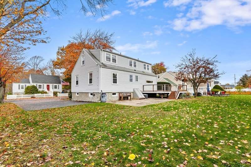 Expansive Cape Cod in popular Lakeside neighborhood. Wonderfully customized by craftsman owner with details and upgrades not often found at this price point. Open concept kitchen and dining area. Unique kitchen finishes include shou sugi ban wall & overhead light fixture and Clerestory widow that overlooks expansive composite deck, patio and large level yard. 1st floor includes freshly refinished maple floors, oversized living room, quaint office with custom builtins, newer alluringly tiled full bath with large soaking tub and 3rd bedroom. The primary suite features gorgeous, exquisitely tiled 3/4 bath with porcelain radiant heated floors, programmable digital rain shower, walk in closet with built -ins and addition eave storage. Expansive composite deck steps down to large paver patio, level lot and shed with power. All this in close proximity to Lake Q with all it's amenities including the farmers market at Hall Park, Veterans Field, pickleball courts and a commuter rail stop.