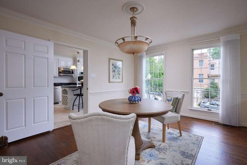 This property is an exquisite, move-in-ready, Town Home in sought after Chatsworth which borders Rock Creek Park. All levels are equally elegant. The entry foyer has an impressive marble floor. All other levels have gorgeous hardwood floors and high ceilings. The Renovated kitchen is a very sophisticated Black and White with Stainless appliances. Closet space is Abundant throughout. The expansive Brick Patio outside the Living Room is beautifully landscaped for your lounging or entertaining pleasure. The Lower Level with attractive built-ins and fireplace can be utilized as a family room or a 4th Bedroom. it has both a full bath with an attractive shower and the laundry area. This property is a Must See!
