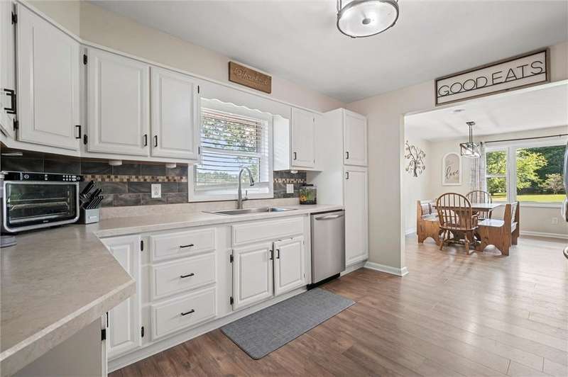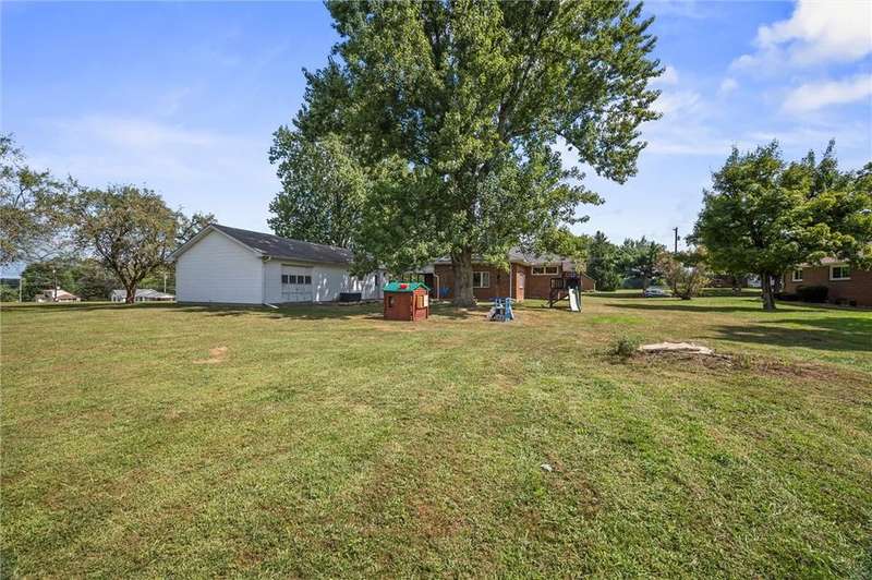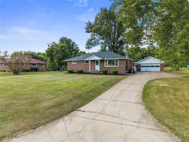 Welcome to this spacious and well-kept 3-bedroom, 2 full-bath brick ranch, perfectly situated on a beautiful 2-acre lot. The home features a comfortable layout with a primary suite complete with a private ensuite, offering privacy and functionality.Step inside to find vinyl plank flooring and original hardwood floors, blending modern updates with timeless charm. The main level includes a large living room with a dining area, updated kitchen, and a cozy den, while the finished basement provides additional living space?perfect for a rec room, home office, or guest area.Outside, enjoy the convenience of a 2-car detached garage, plus an additional garage in the backyard?ideal for storage, hobbies, or a workshop. The expansive lot offers room to roam, garden, or simply enjoy the outdoors in a peaceful setting.