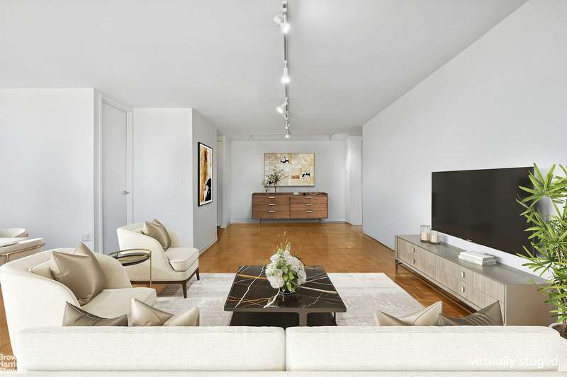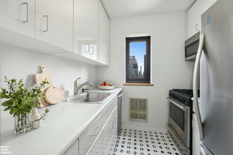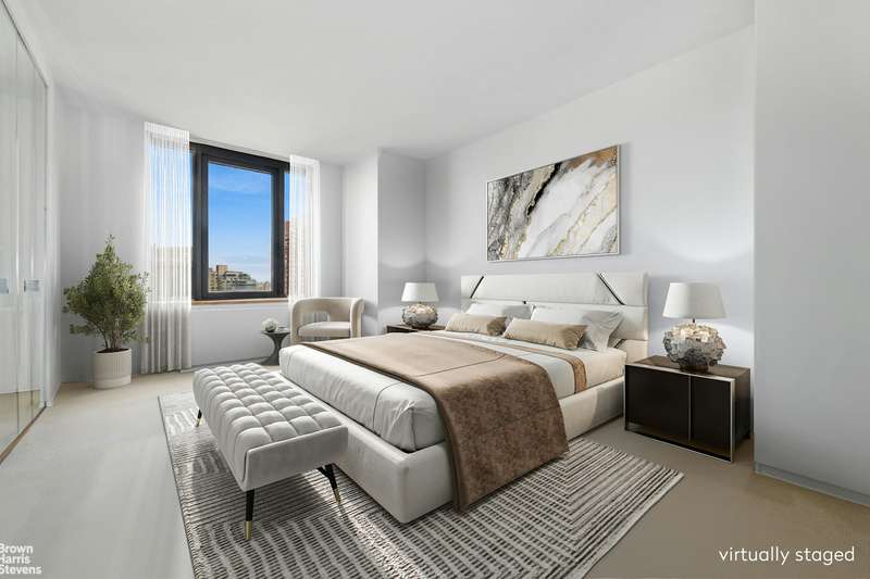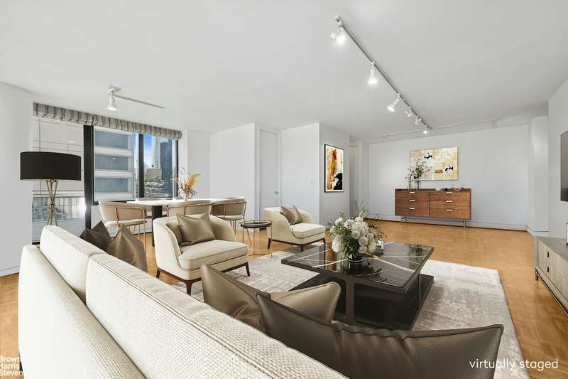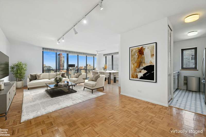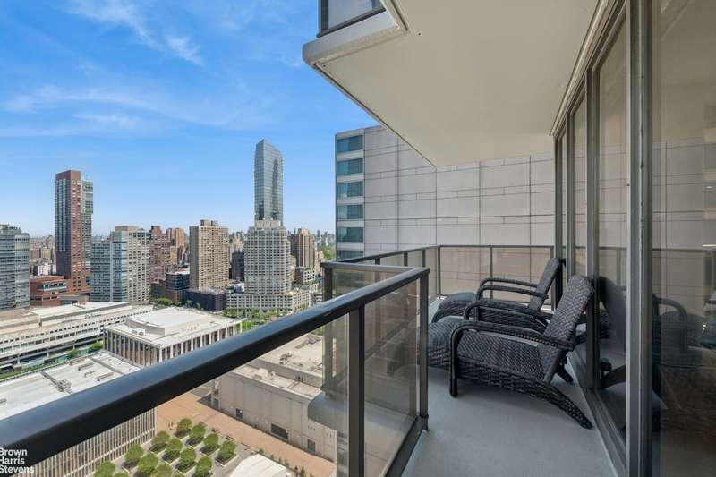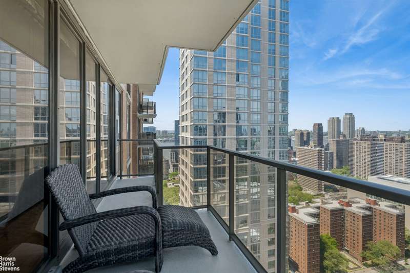 This coveted F-line is the largest Junior-4 at The Alfred. Perched on the 33rd floor facing north, with wide open views from every room, and a wraparound balcony. Huge living area with floor-to-ceiling windows and corner alcove offering flexible layout. Windowed kitchen, washer/dryer and powder room. The Alfred, a full-service pet-friendly condo, is uniquely situated on a quiet cul-de-sac in Lincoln Square. Amenities include a 75-foot pool, hot tub, sauna, steam room, health club with separate areas for cardio and strength training, community room, courtyard garden, garage, and mini park. A key operated private access leading out to Lincoln Center. Conveniently located near Columbus Circle, South Riverside and Central Parks, with easy access to world renowned centers for performing arts, fabulous shops, fine dining, outdoor recreation, and public transportation.
