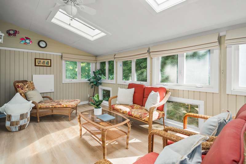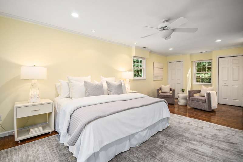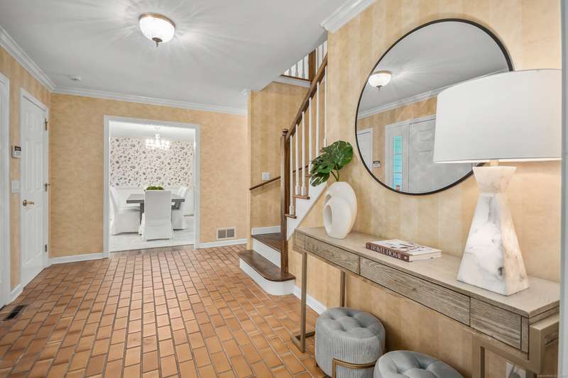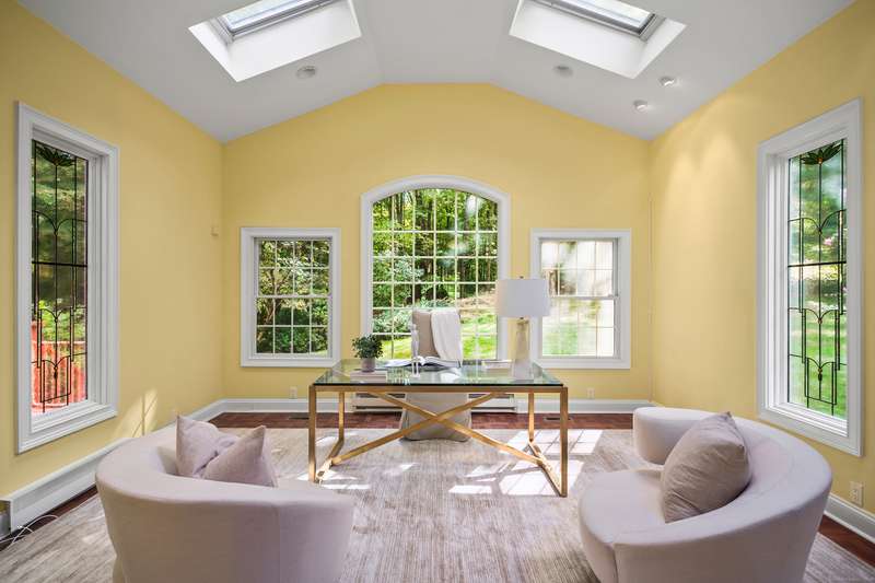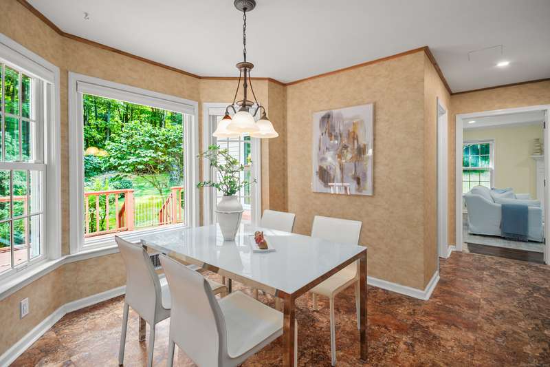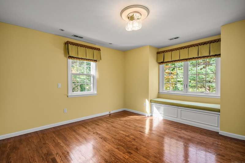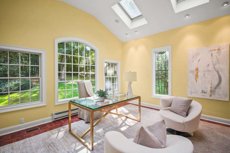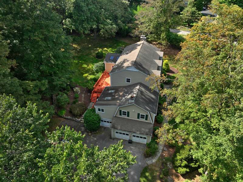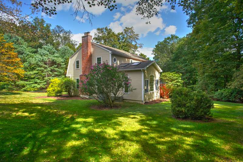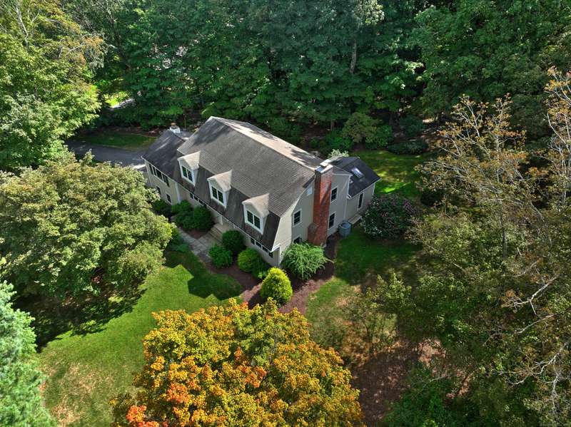 Sophisticated South Wilton living awaits! Welcome to this spacious and inviting colonial, perfectly situated in one of Wilton's most desirable locations. Inside, you'll find generously sized rooms designed for both everyday living and effortless entertaining. The large living room and oversized family room-complete with cathedral ceilings, exposed beams, and fireplaces-offer cozy retreats for gathering on winter nights. A versatile bonus room with skylights and striking Palladian windows overlooks the private backyard, making it an ideal home office, den, or music room. The sun-filled primary suite is large enough for a sitting area and features its own private bath, while three additional bedrooms provide plenty of space for family and guests. The finished lower level offers flexibility for an in-law suite, recreation room, or additional living space, with direct access to the three-car garage. A bright sunroom with skylights and an expansive deck extend the living space outdoors, p